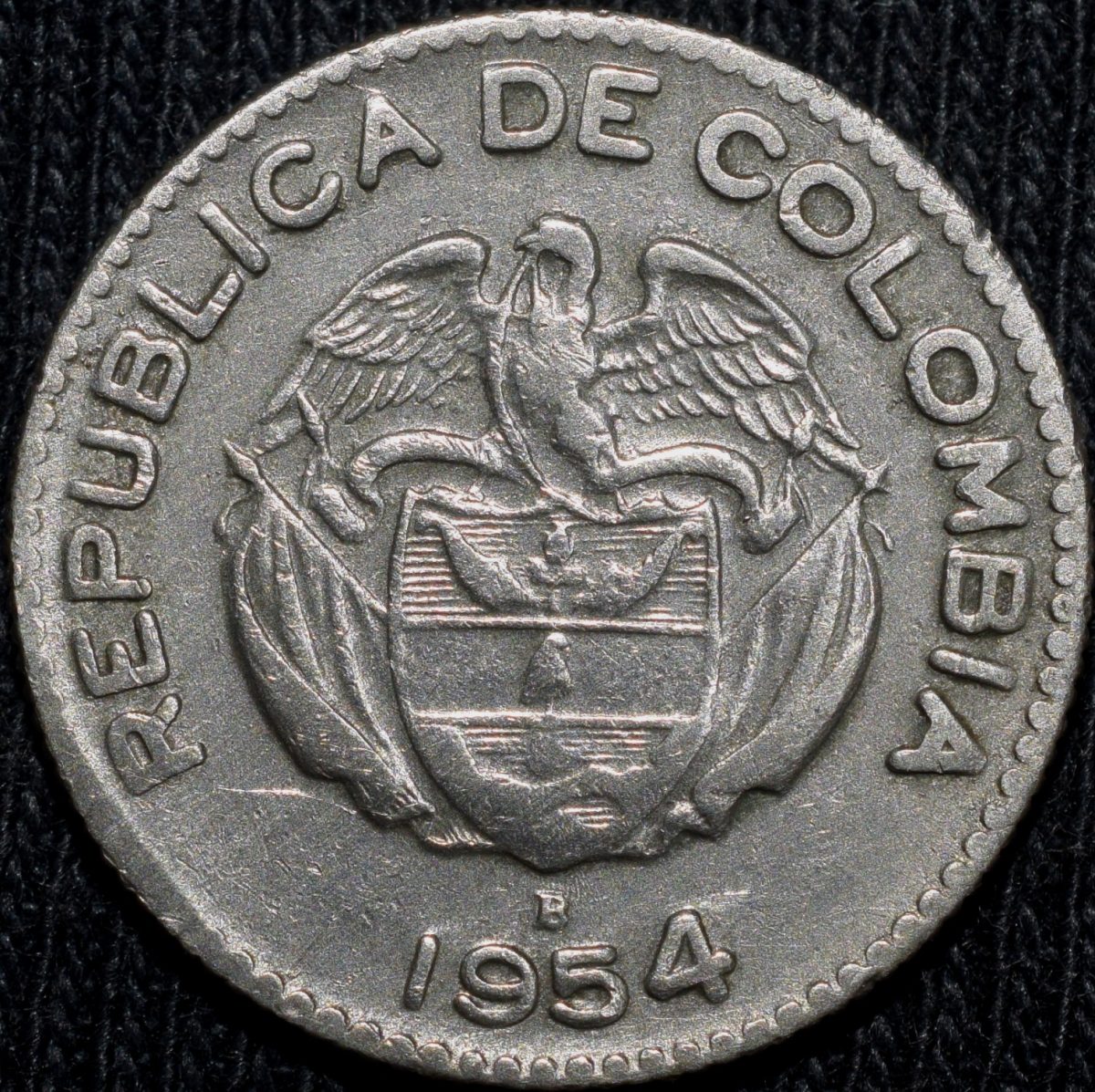Old Copper-Nickel 10 Pesos of Colombia Country (AD 1954) with portrait of Indio Chief