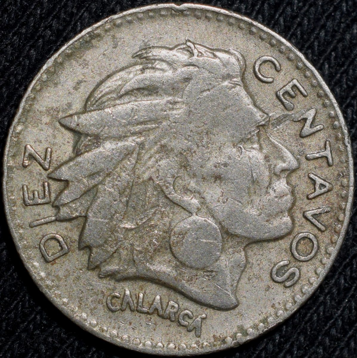 Old Copper-Nickel 10 Pesos of Colombia Country (AD 1964) with portrait of Indio Chief