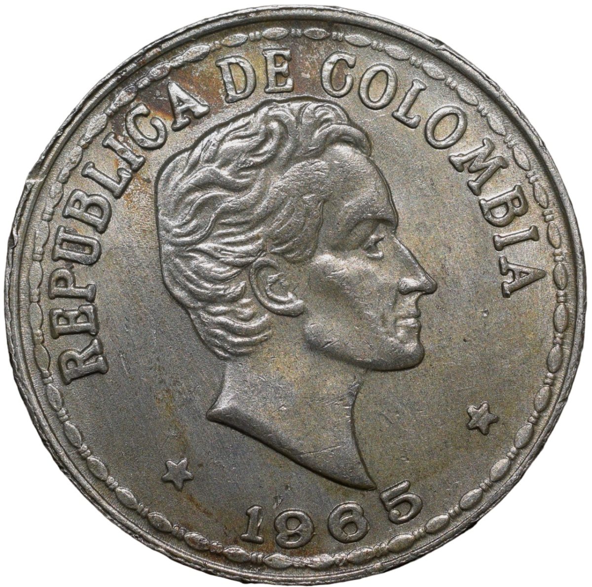 Old Copper-Nickel 20 Centavos of Colombia Country (AD 1965) Simon Bolivar