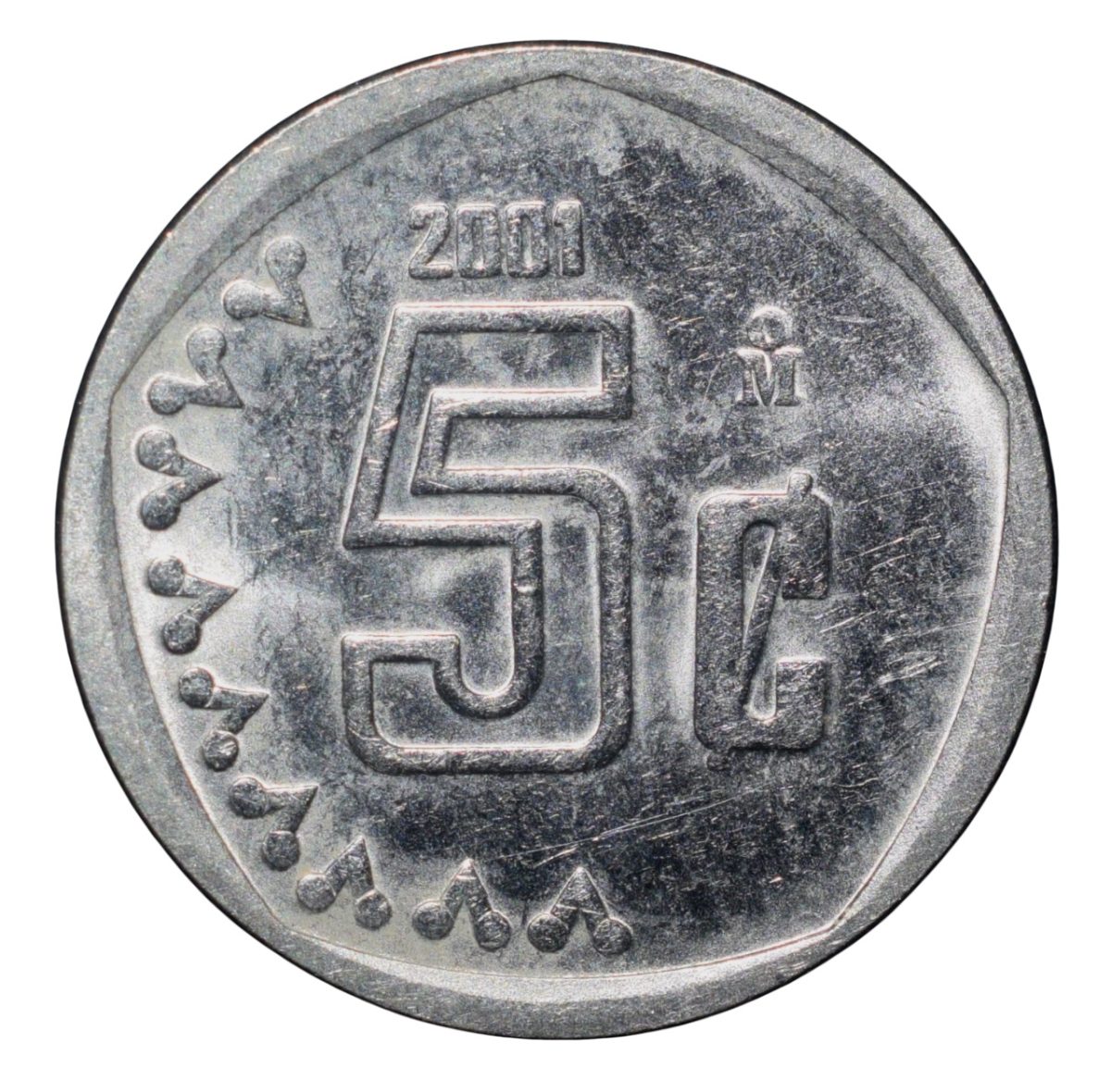 Steel 5 Centavos of Mexico (AD 2001) with Eagle holding Snake