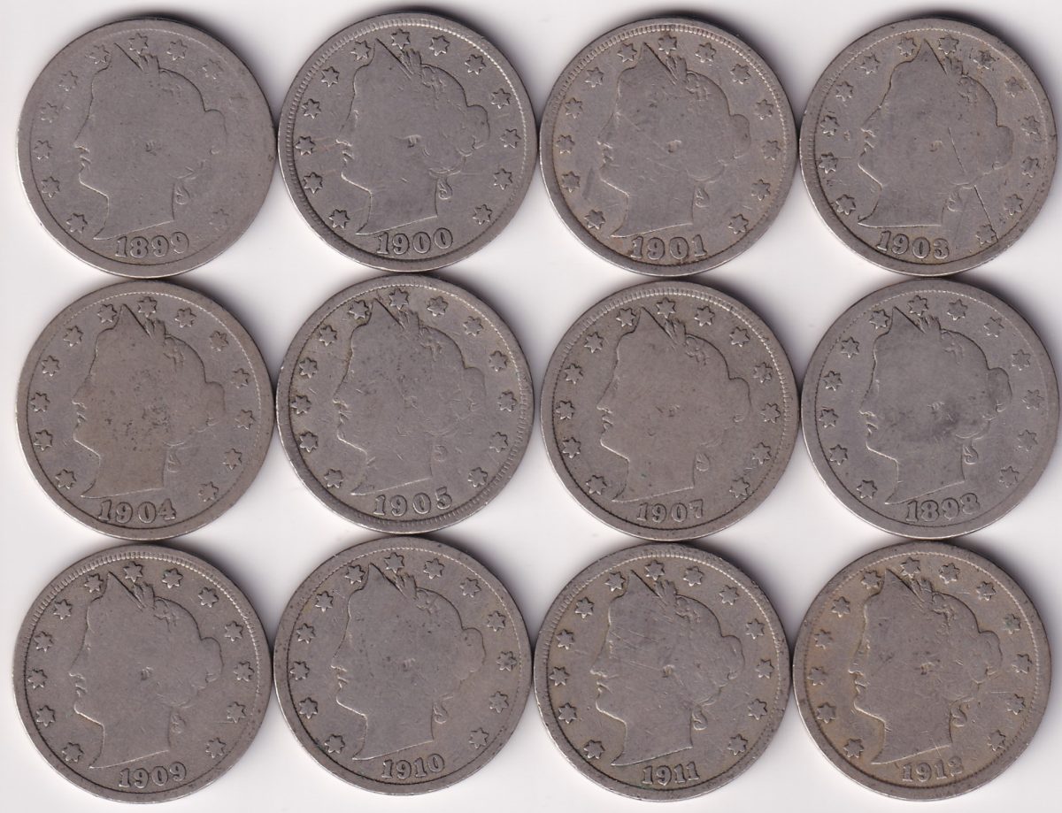 usa 5 cents nickel liberty head 12 Different Years Set Old Rare