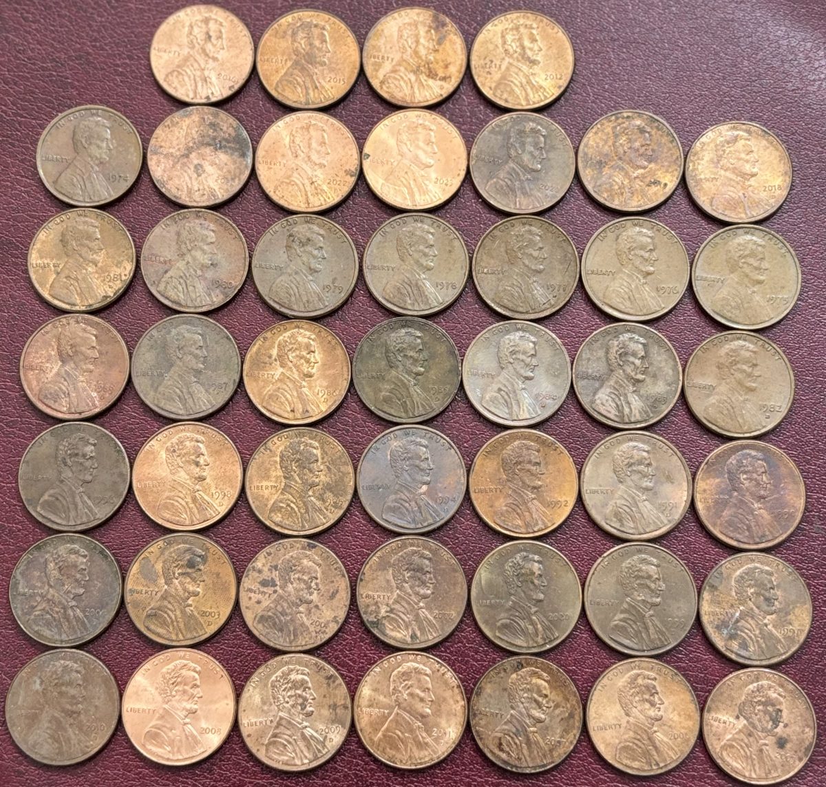 🌟 Rare Collection of 45 Different Years Lincoln Pennies