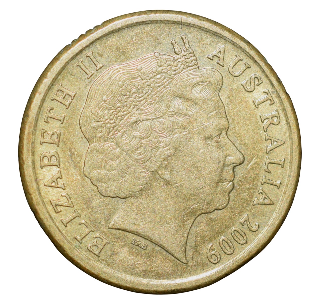 Australia Country, Elizabeth II, (AD 2009), Brass 2 Dollars, Obv: 3rd portrait of Queen Elizabeth II facing right wearing the King George IV State Diadem, Rev: 1/2 length figure of Aboriginal man at left, Southern Cross above, denomination at right, designer’s initials below, Grass Tree to the far right, 6.60 Gms, 20.50 mm, About Very Fine, Scarce.