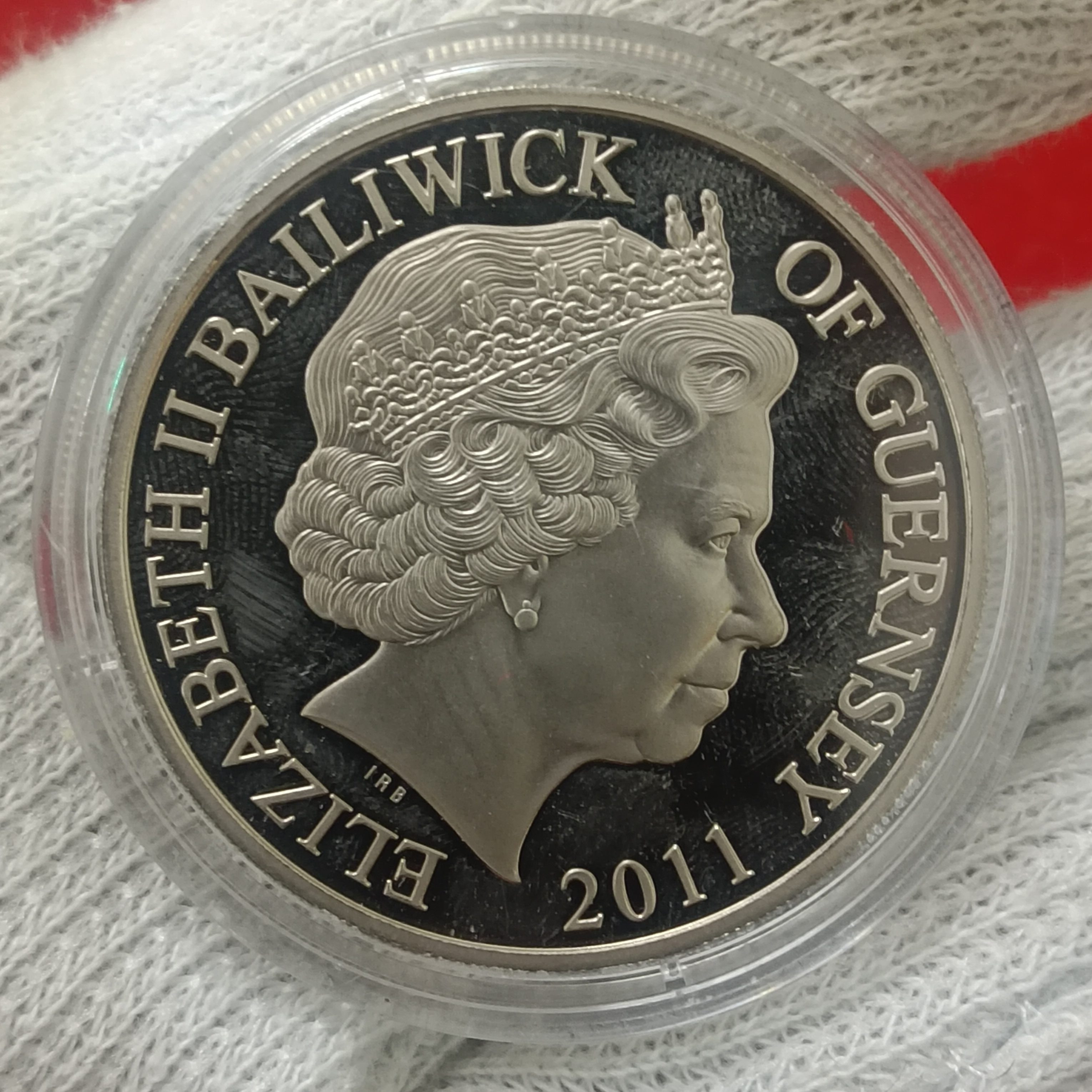 2011 Bailiwick of Guernsey Proof Five Pound coin, commemorating the 40th Anniversary of Decimalisation.