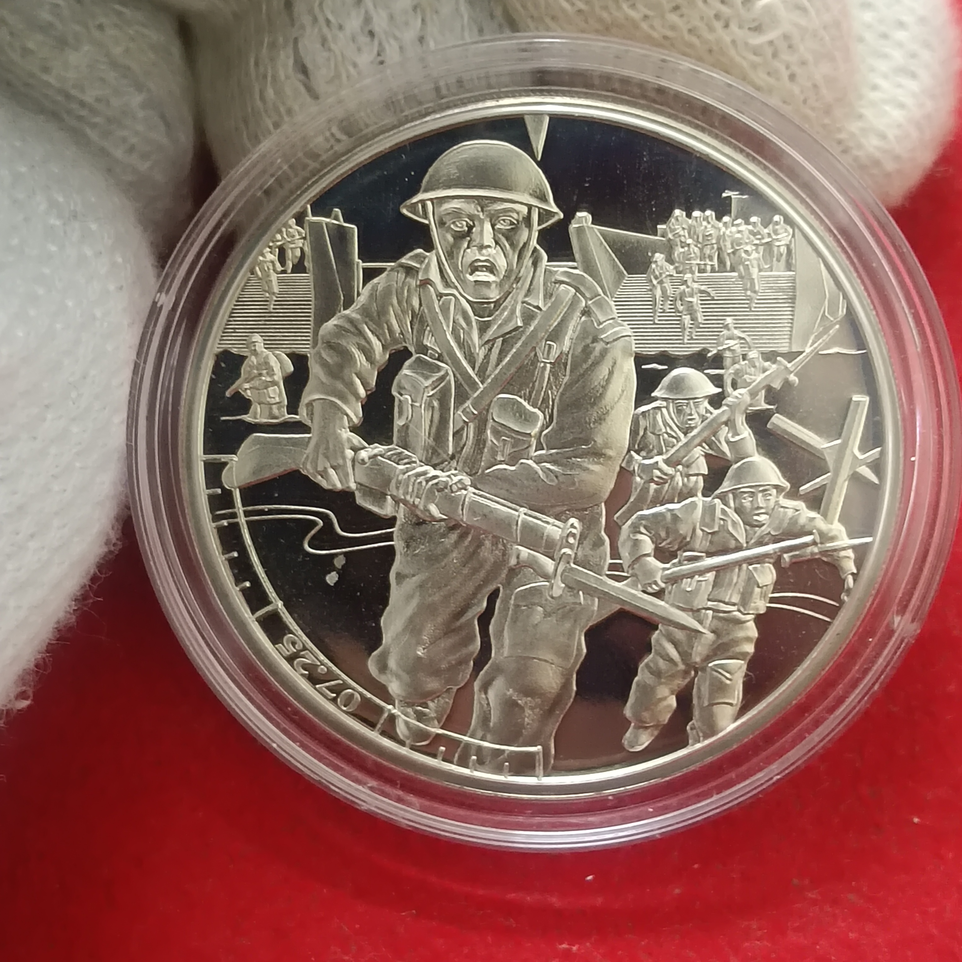 a 2019 Guernsey Proof £5 coin commemorating the 75th Anniversary of the D-Day Landings.
