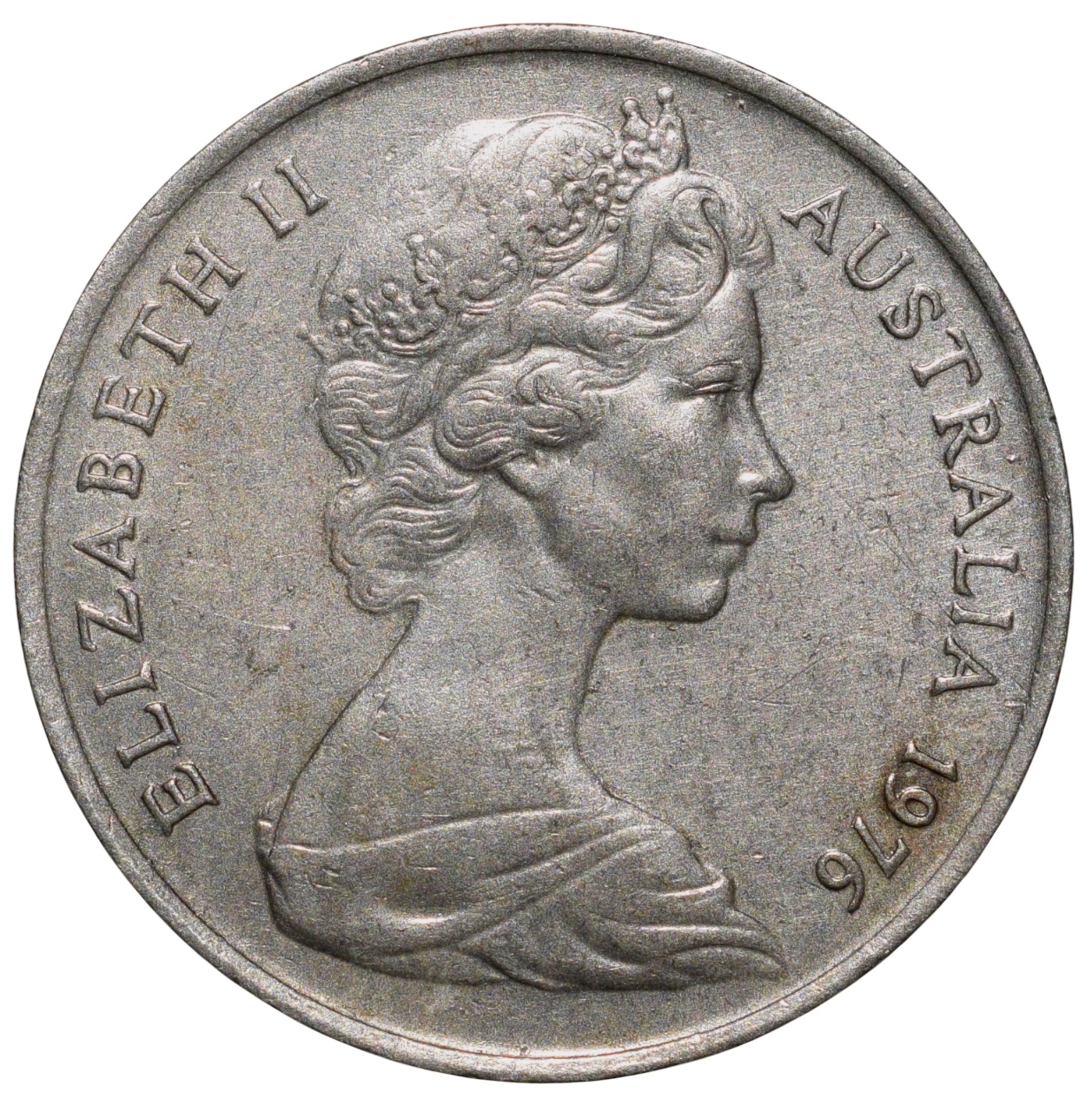 Australia, Elizabeth II, (AD 1976), Nickel 5 Cents, Obv: Elizabeth II facing Right, Inscription & Date, Rev: An echidna (also known as a spiny ant-eater) & Denomination, 2.90 Gms, 18.57 mm, Extremely Fine.