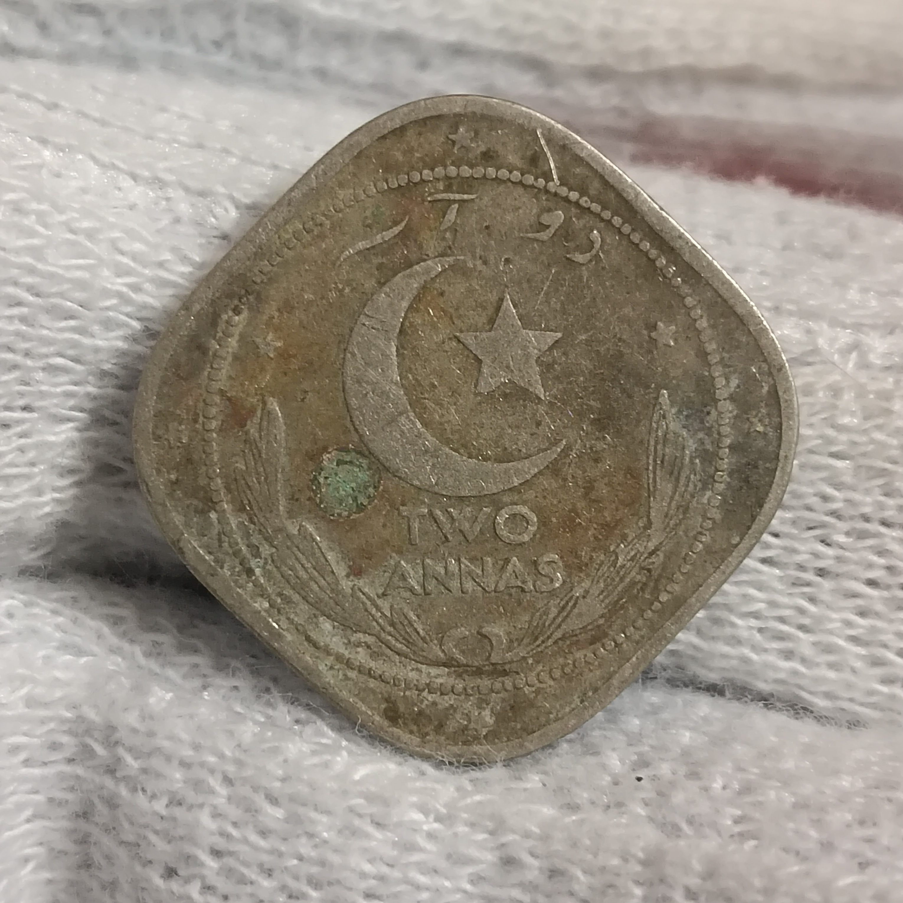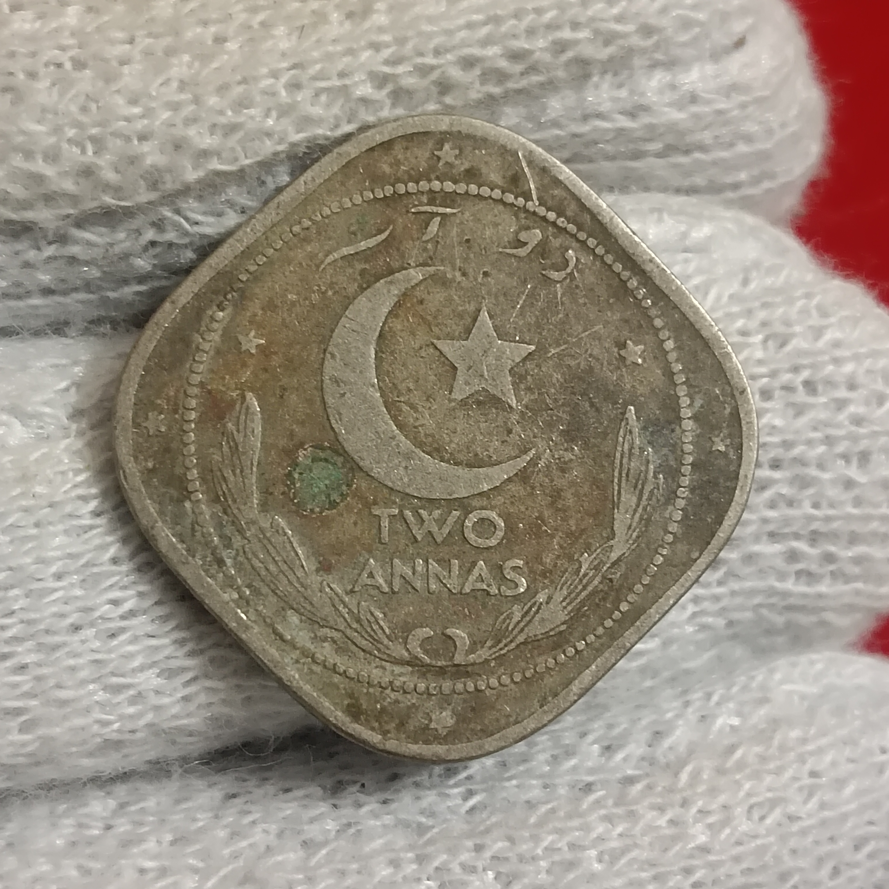 • Genuine Two Annas coin from 1949, issued by the Government of Pakistan