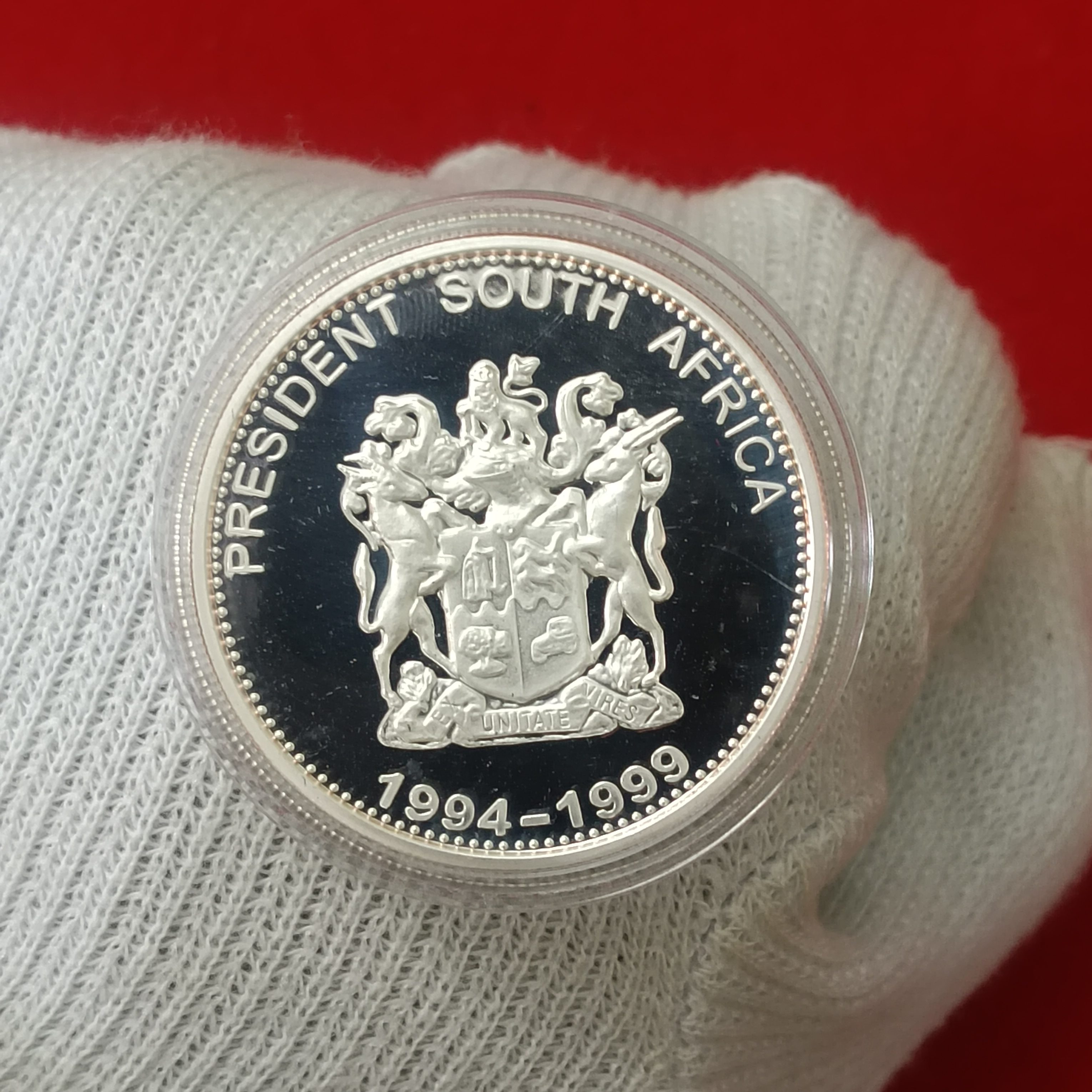 - Rare NELSON ROLIHLAHLA MANDELA President South Africa 1994 -1999 Year Silver Coated Proof Coin