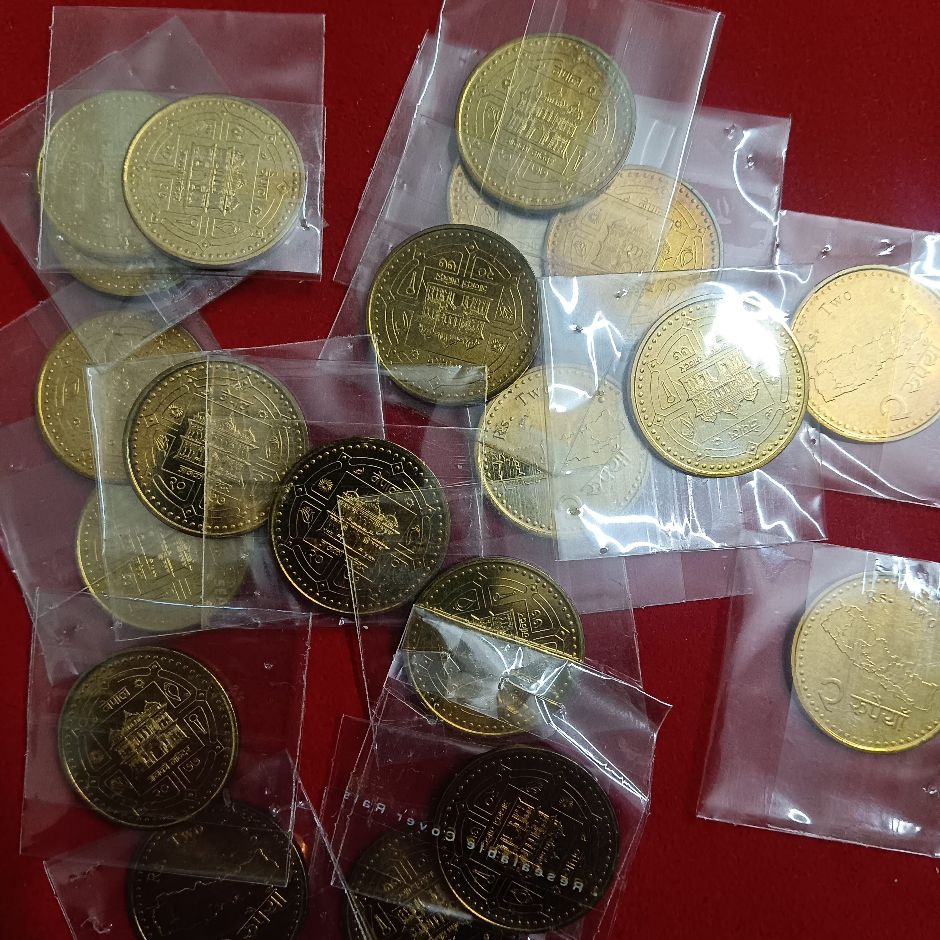 - Rare Old Two Rs Bronze Coin Nepal Coins Janki Mandir 20 Pcs Given Unc Condition