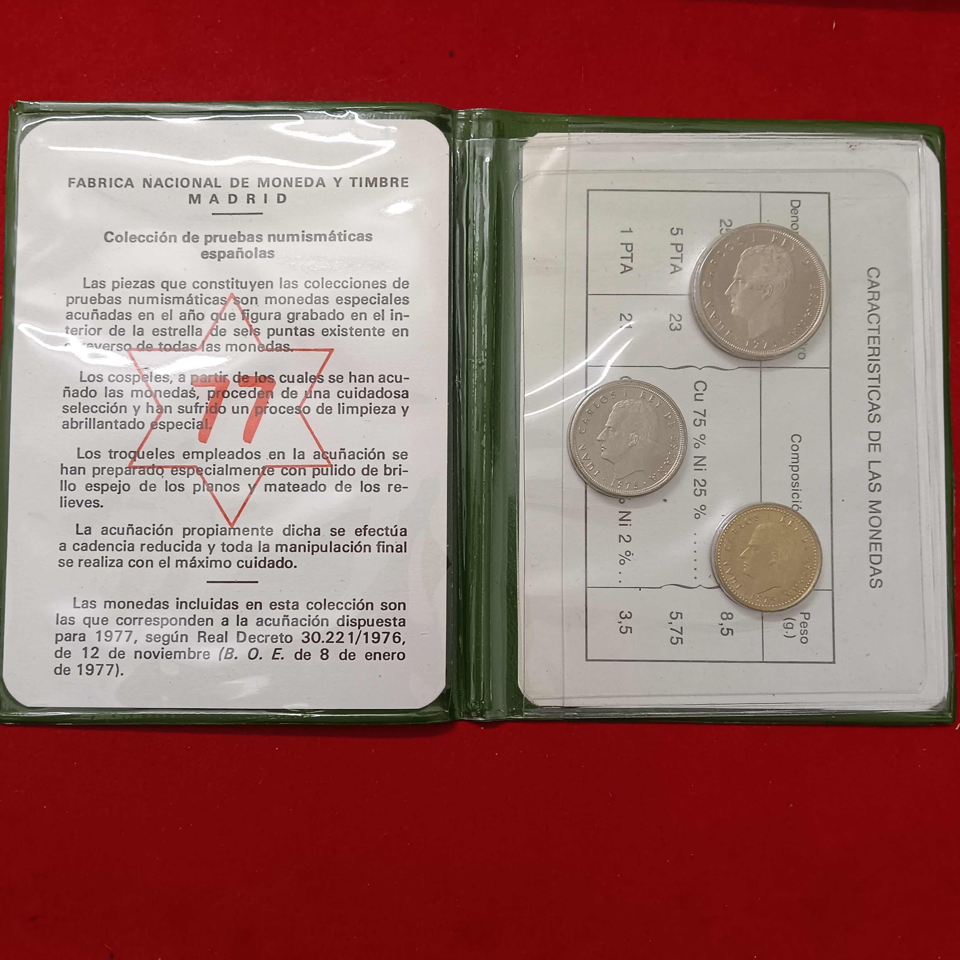 Rare Spanish Coin Set Pruebas Numismaticas Fabrica National De Moneda Luan Carlos 1975 Issue Year