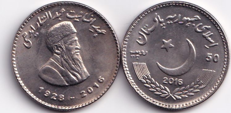 Pakistan 50 Rupees Abdul Sattar Edhi 2016 Unc Commemorative issue Coin