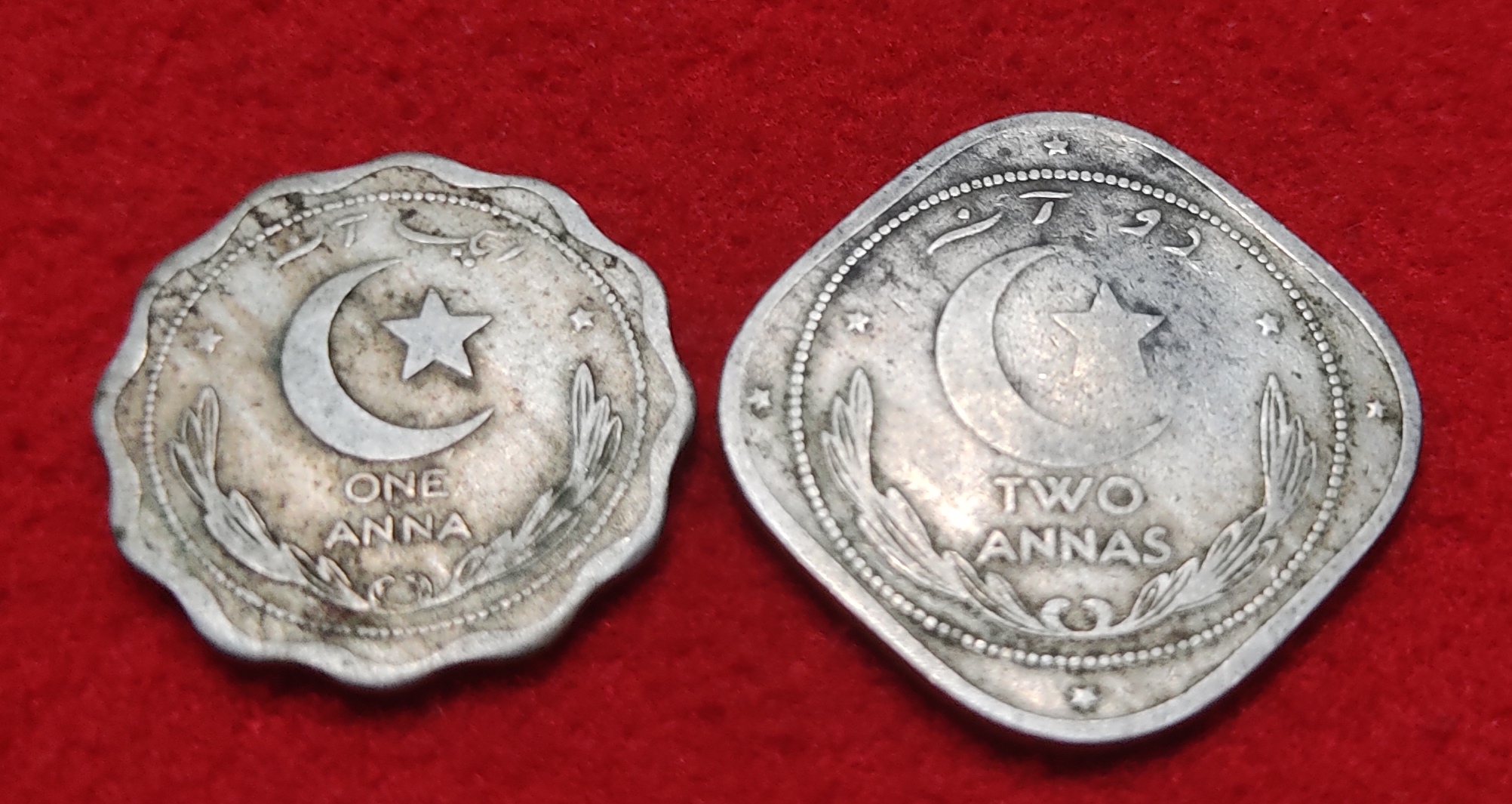 PAKISTAN TWO COIN SET ONE ANNA 1948,TWO ANNA 1951