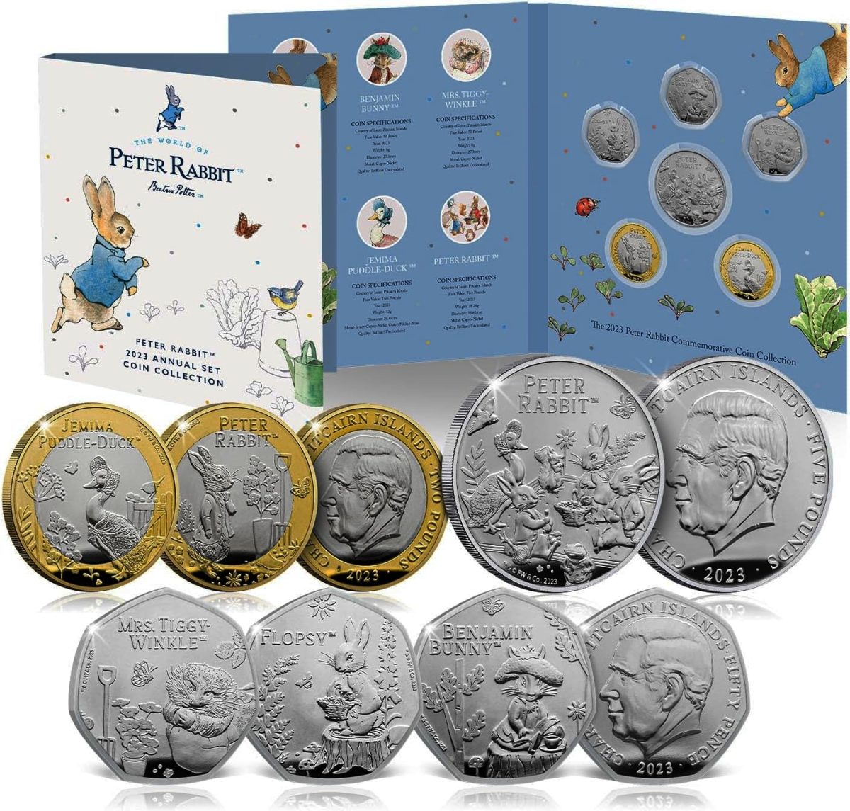 Pitcairn Islands, 6 coin set, 2023, Peter Rabbit, Mint Folder.