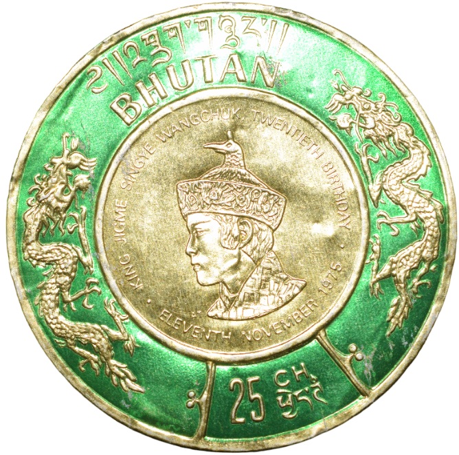 Postal Stamp of Bhutan Country – Gold & Green Colour 25 Chhertums Mint Un-Used Condititon as per Image.