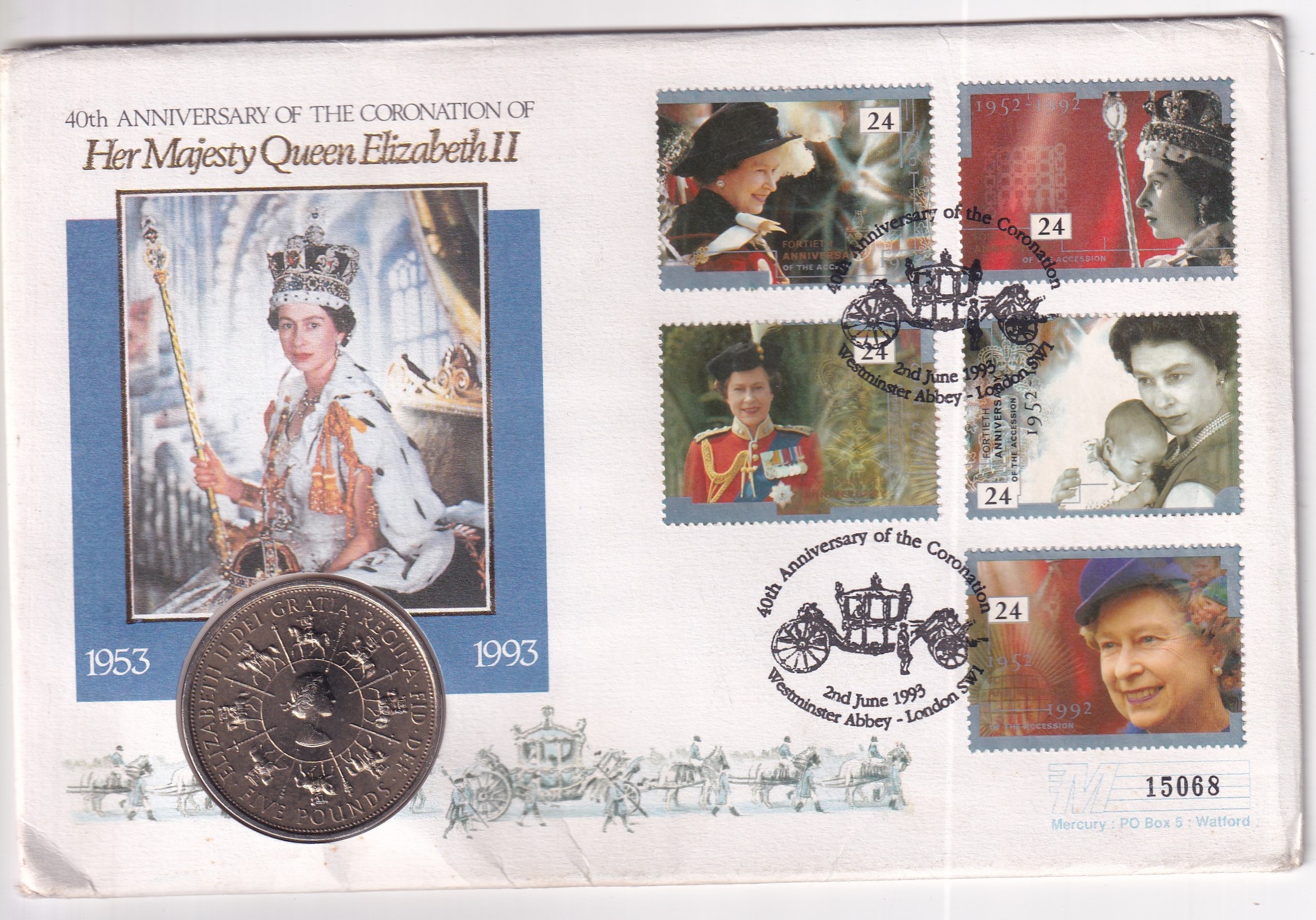 REGINA 5 POUNDS 1993 – 40th ANNIVERSARY OF CORONATION HER MJAESTY QUEEN ELLIZABRTH II COMMEMORATIVE COIN MINT PACK GEM UNC
