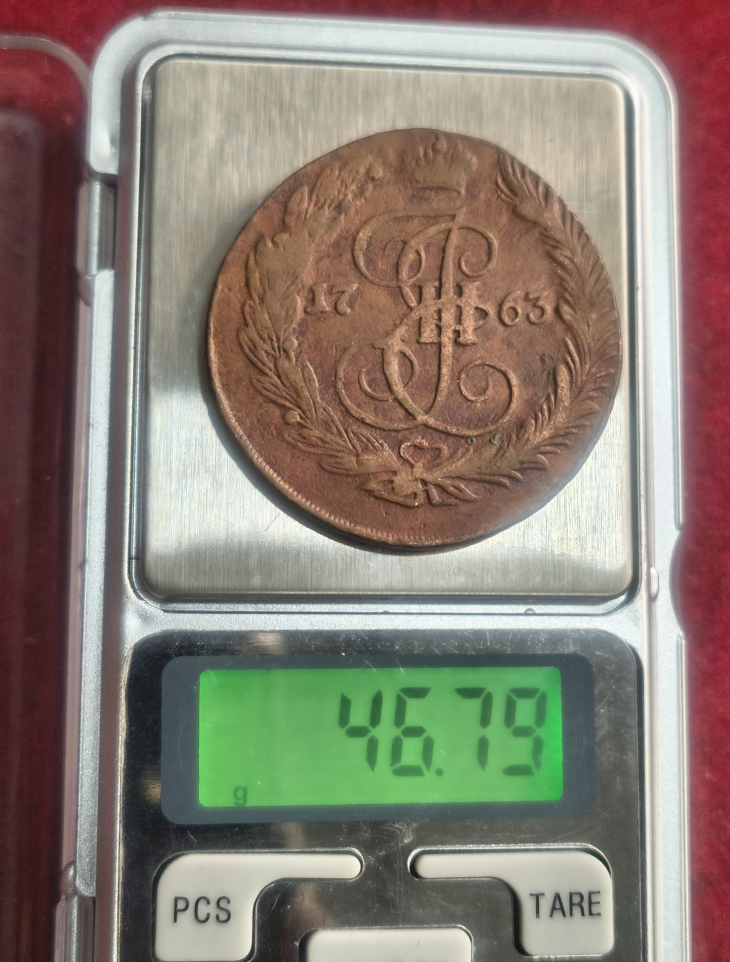 Russian 5 Kopecks 1763 – Catherine II EXTREMELY RARE BIG SIZE WEIGHT (APROX. 52.8 g ) COIN # 555