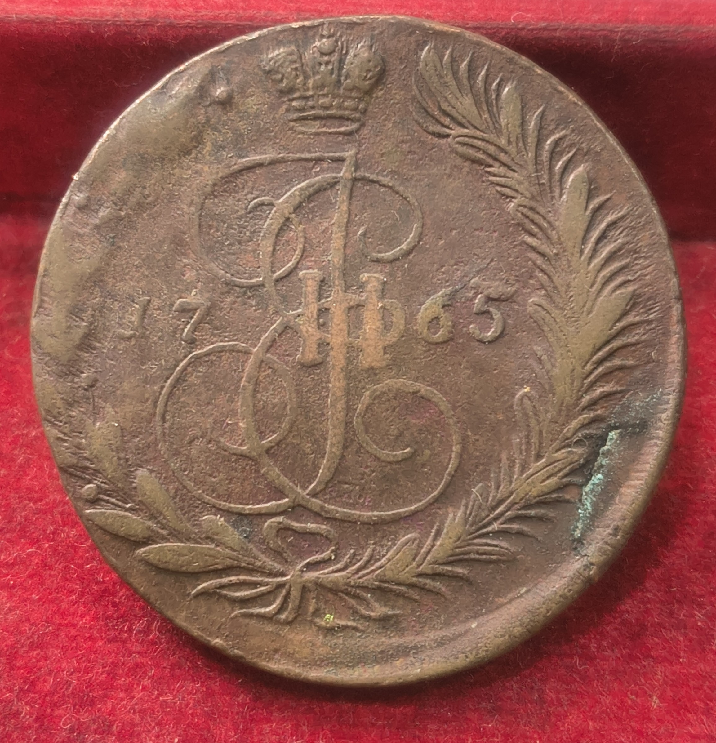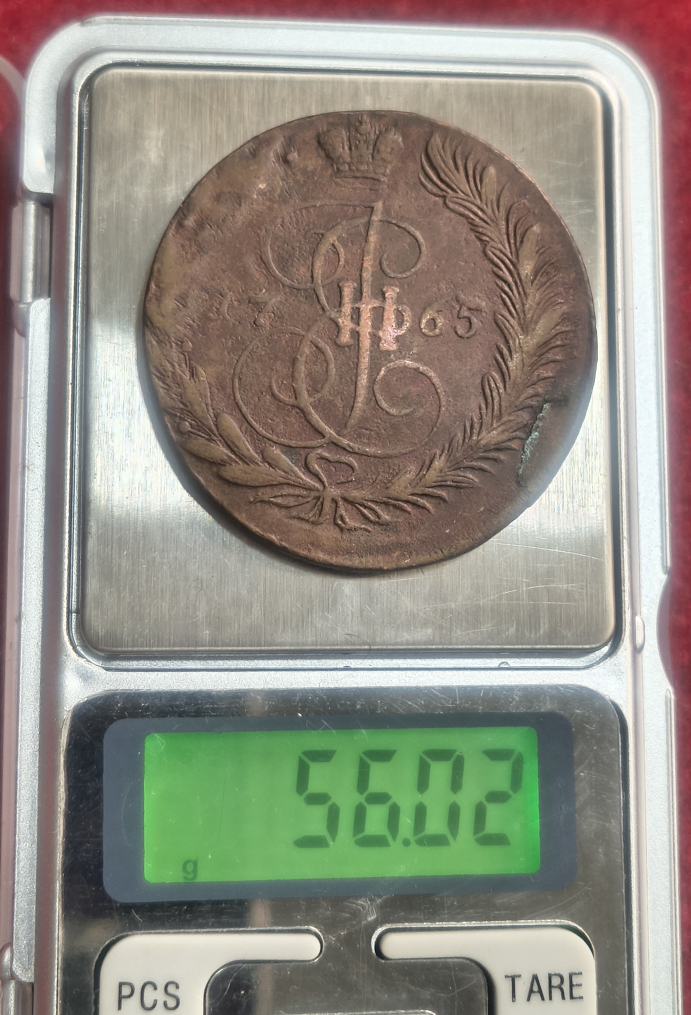 Russian 5 Kopecks 1765 – Catherine II EXTREMELY RARE BIG SIZE WEIGHT (APROX. 52.8 g ) COIN # 222
