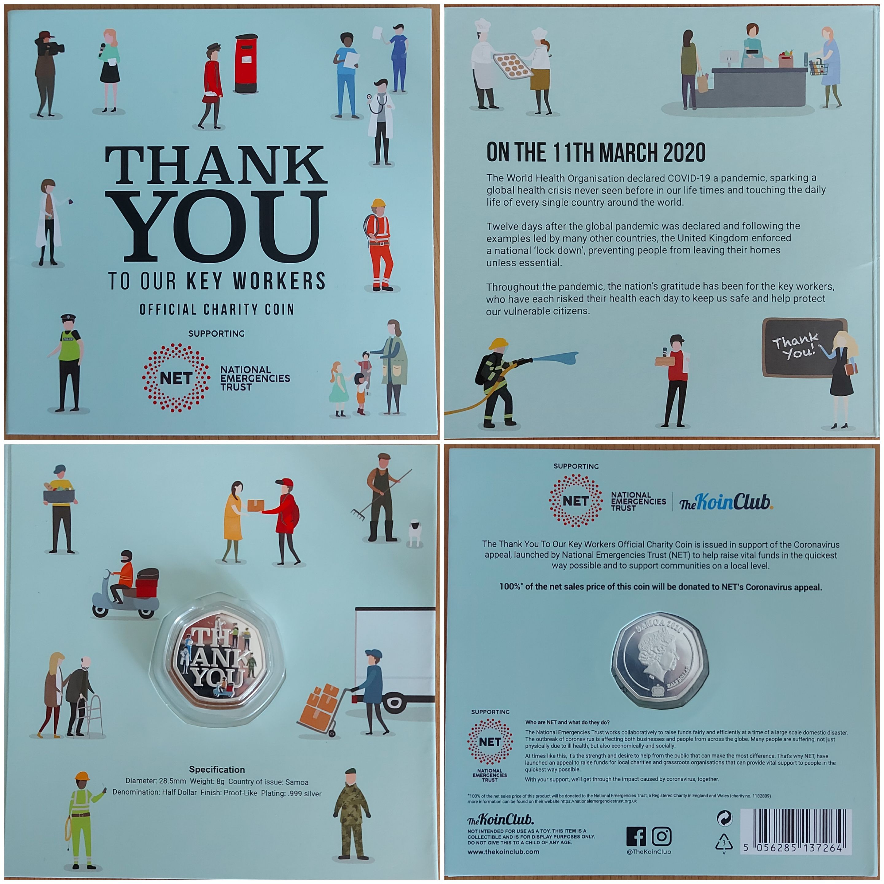 Samoa, ½ Dollar, 2020, COVID-19 Pandemic – Thank you, Coloured, Silver plated, KM #520, Proof-like, Folder.