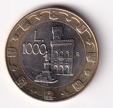 San Marino 1000 Lire (Millennium of building of Castle) Commemorative Coin#Z-29