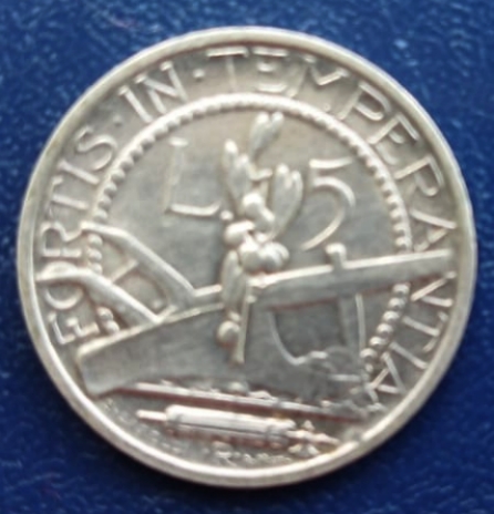 San Marino, 5 Lire, 1931-1938, Silver, KM #9, Fine Condition.