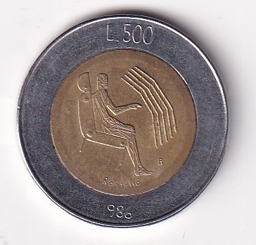 San Marino 500 Lire 1986 Man with Computer Commemorative issue Rare Bimetallic Coin #M-929