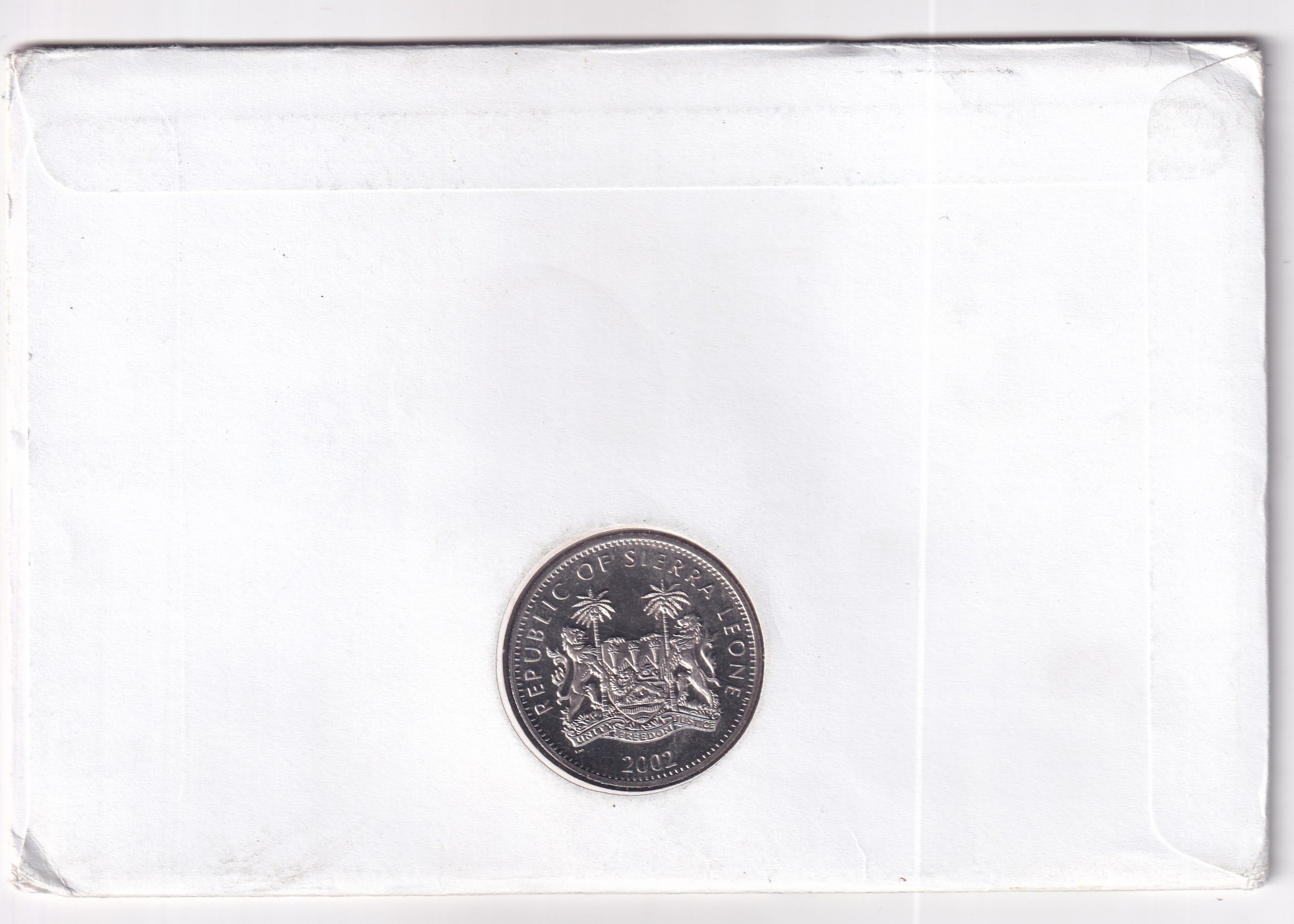 SIERRA LEONE 1 DOLLAR 2002 – HER MAJESTY *QUEEN ELIZABETH* THE QUEEN MOTHER – COMMEMORATIVE COIN FIRST DAY COVER MINT PACK GEM UNC