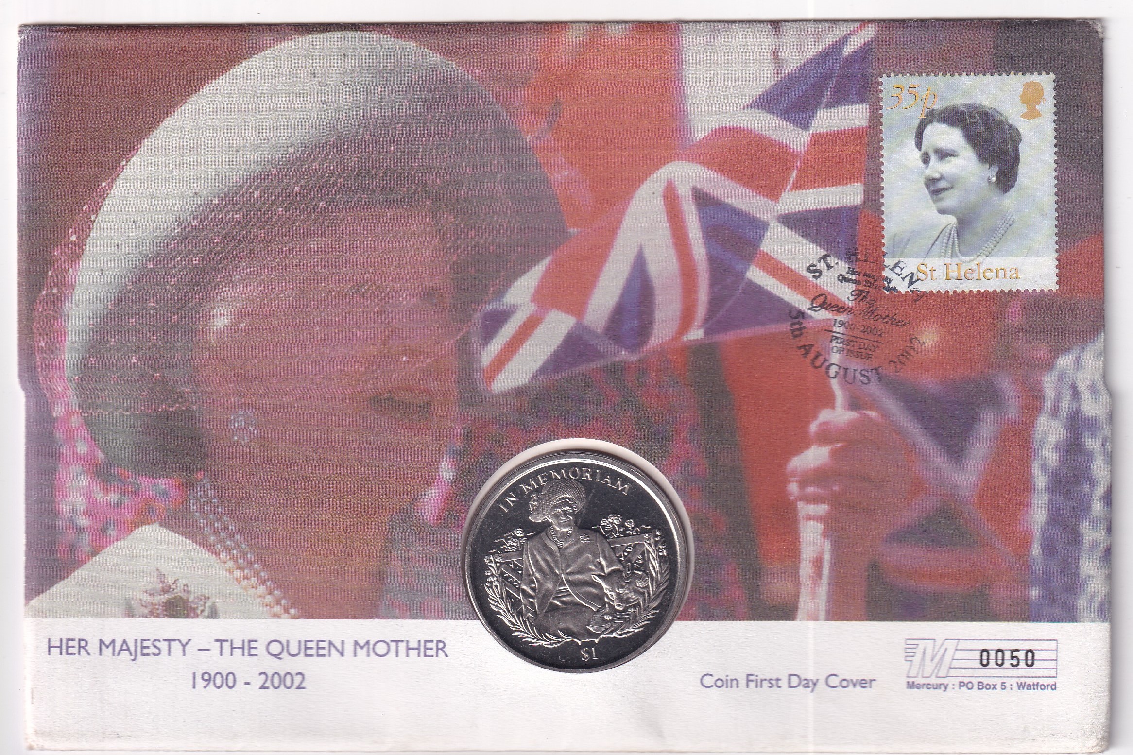SIERRA LEONE 1 DOLLAR 2002 – HER MAJESTY THE QUEEN MOTHER – COMMEMORATIVE COIN FIRST DAY COVER MINT PACK GEM UNC
