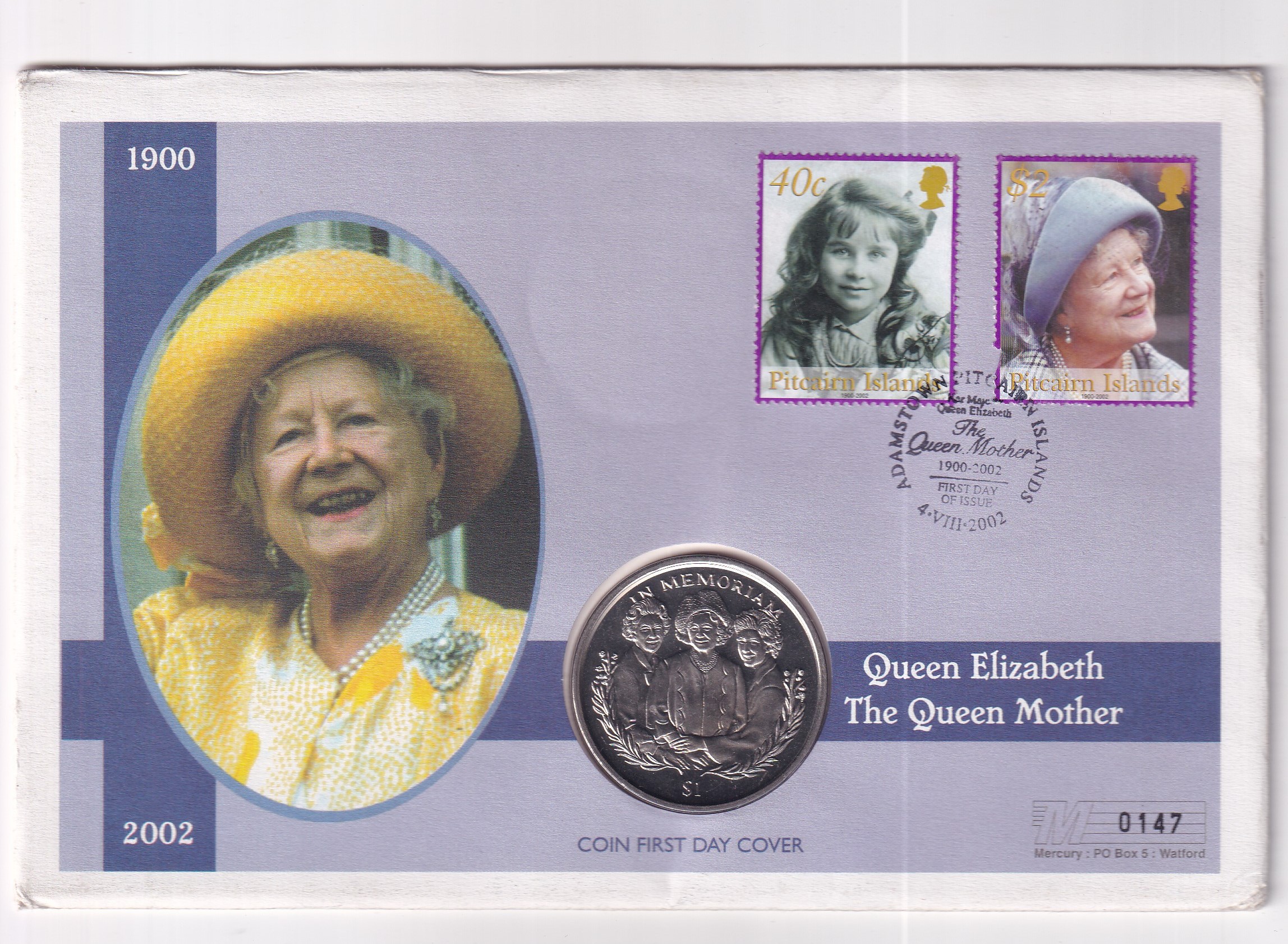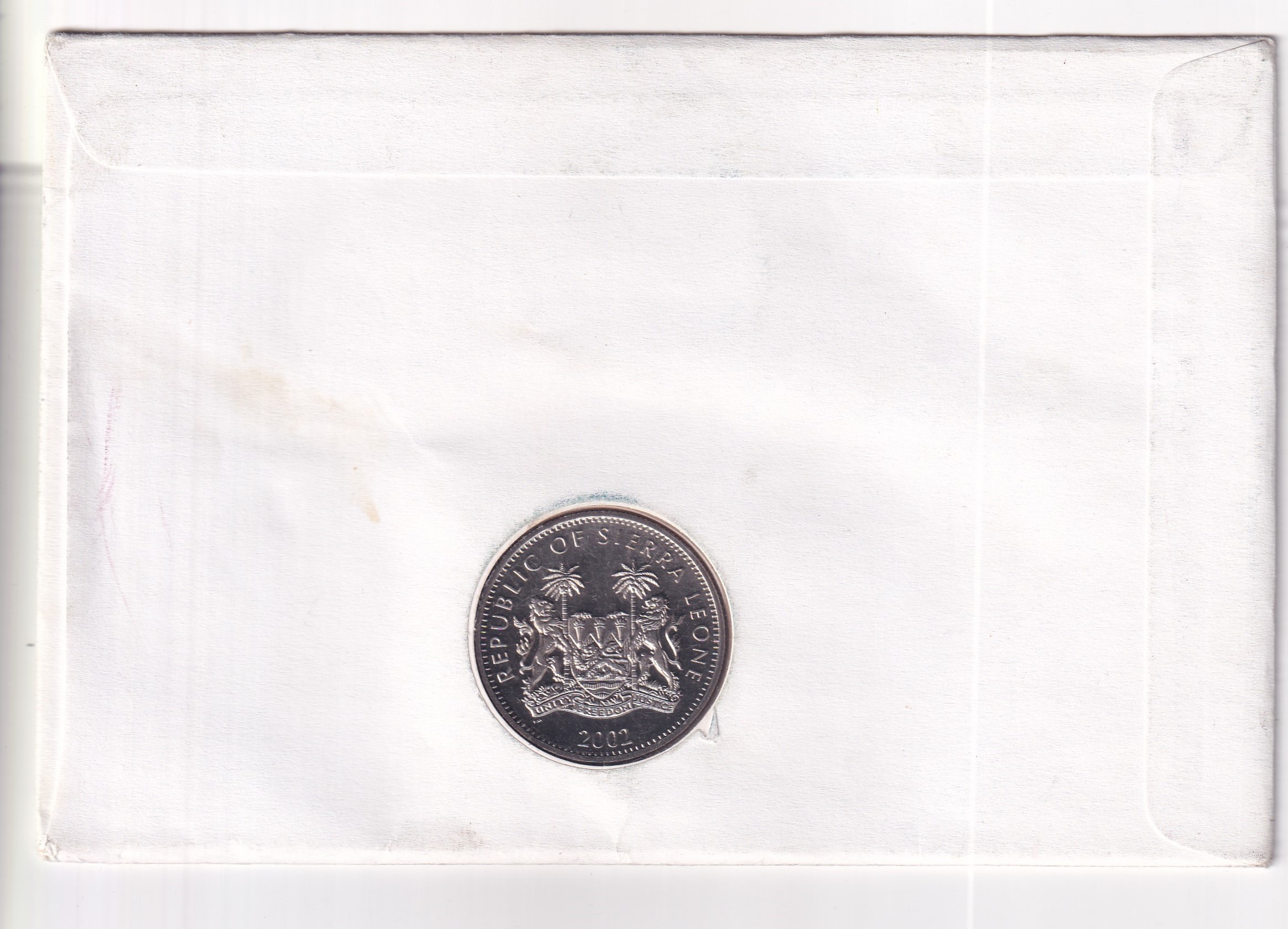 SIERRA LEONE 1 DOLLAR 2002 – *QUEEN ELIZABETH* THE QUEEN MOTHER – COMMEMORATIVE COIN FIRST DAY COVER MINT PACK GEM UNC