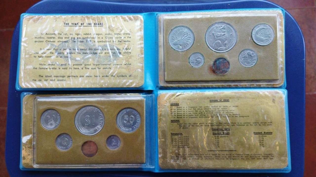 Singapore, 1977, 6 coin set, The Year of the Snake, Mint Folder in Medium Condition, Coins with toning.