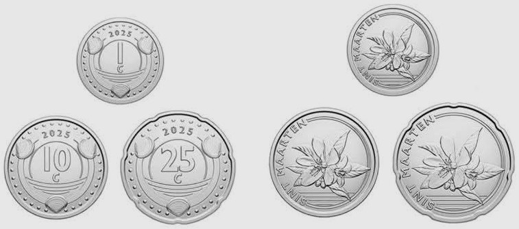 Sint Maarten (Dutch Caribbean), 25 + 10 + 1 Cent, 2025, UNC Condition.