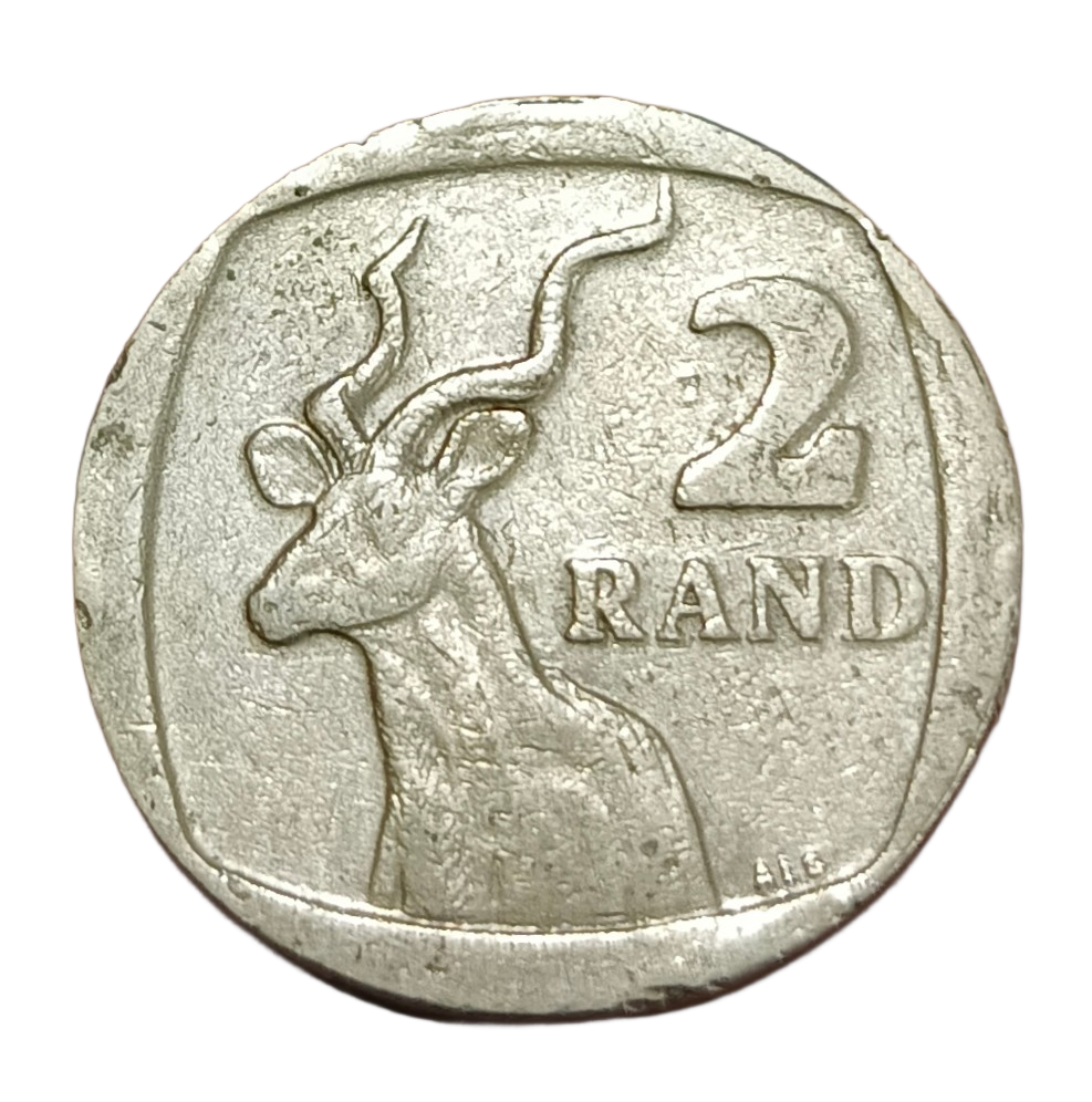 SOUTH AFRICA Nickel Plated 2 RAND Year 2005 SOUTH AFRICAN COAT OF ARMS, GREATER KUDU in Collectable Grade.