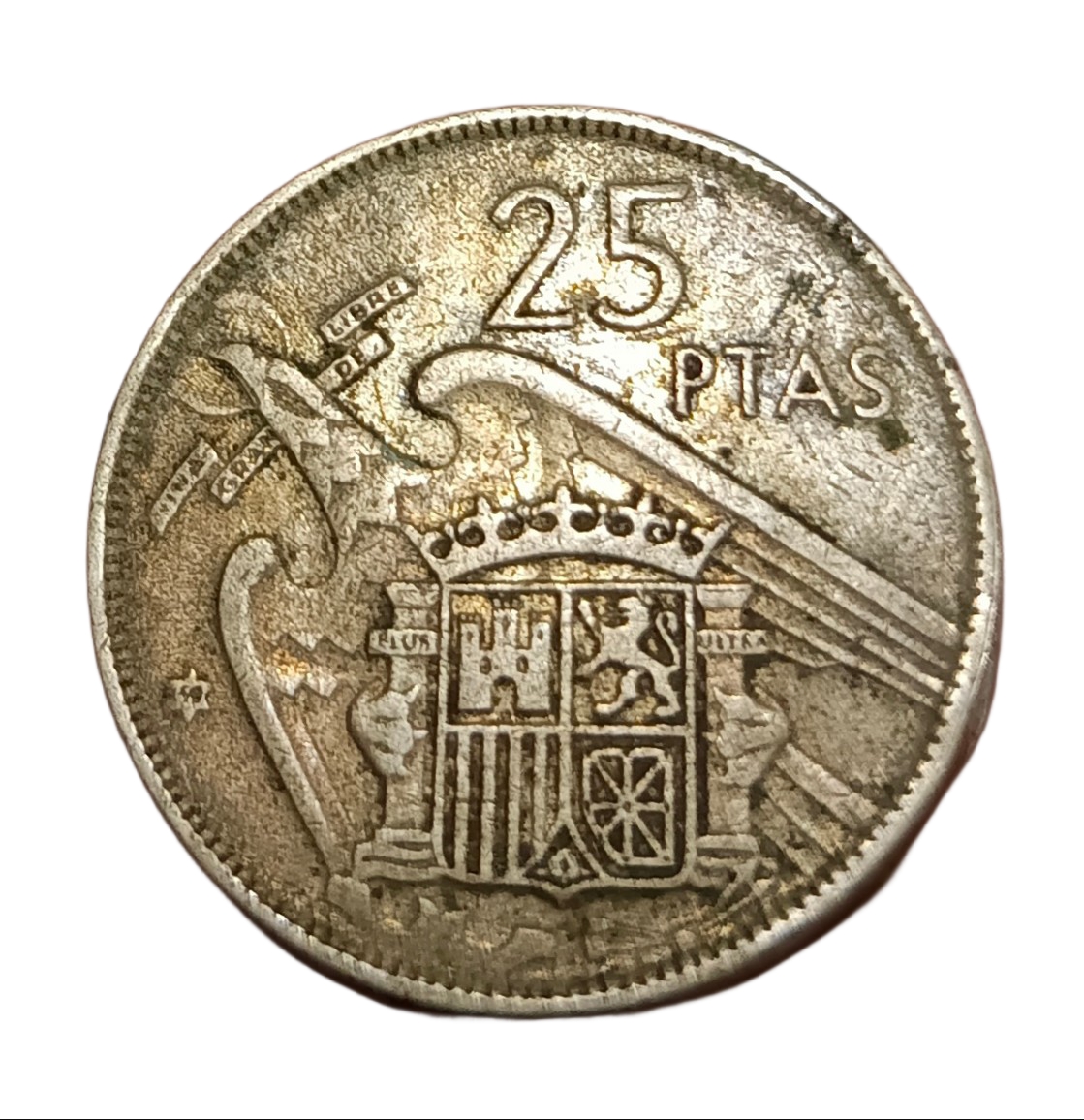 🏷️ Rare 1957 SPAIN Cu/Ni 25 PESETAS coin
