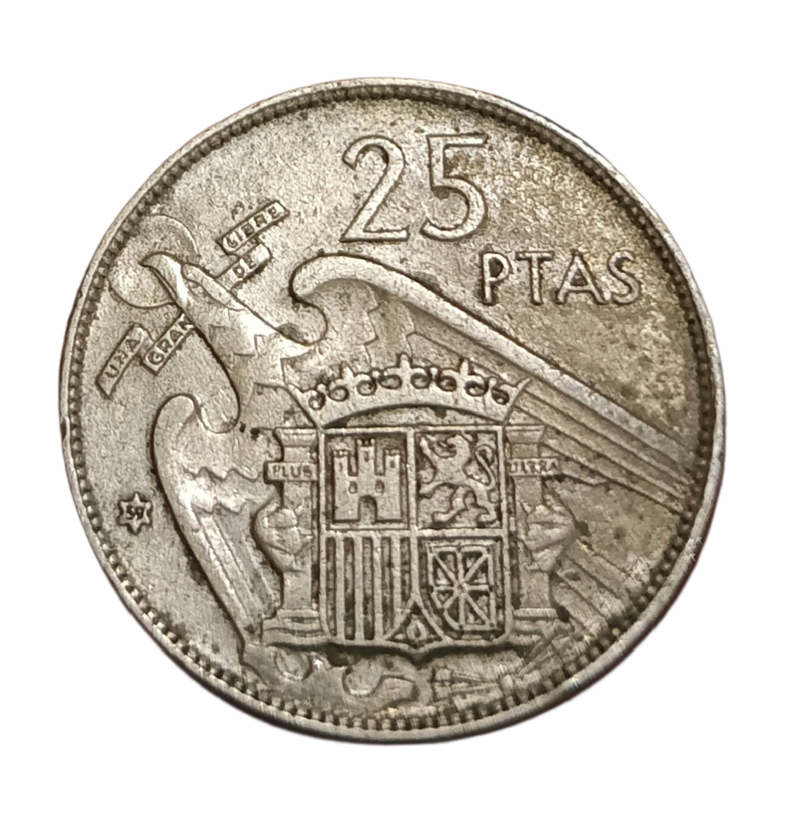 SPAIN Cu/Ni 25 PESETAS Year 1957 FRANCISCO FRANCO Collectable Grade.