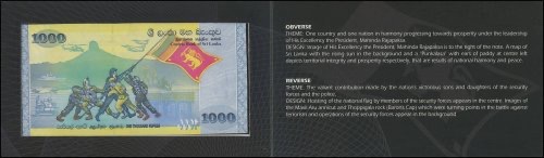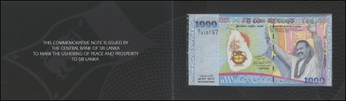 Sri Lanka 1,000 Rupees Banknote, 2009, P-122b, UNC, Commemorative, Peace and Prosperity in Sri Lanka, w/ Folder-Card