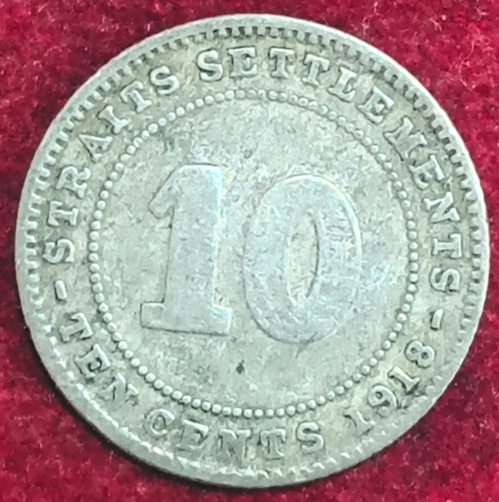 STRAITS SETTLEMCNT 10 CENT GEORGE V 1918 SILVER RARE COIN #S-46