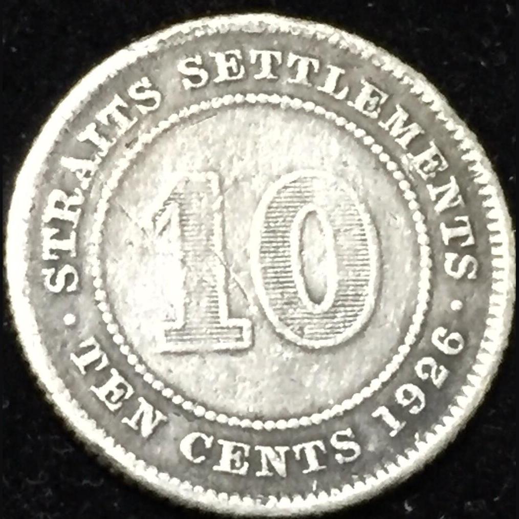 Straits Settlements 1926 Silver 10 Cents George Fifth