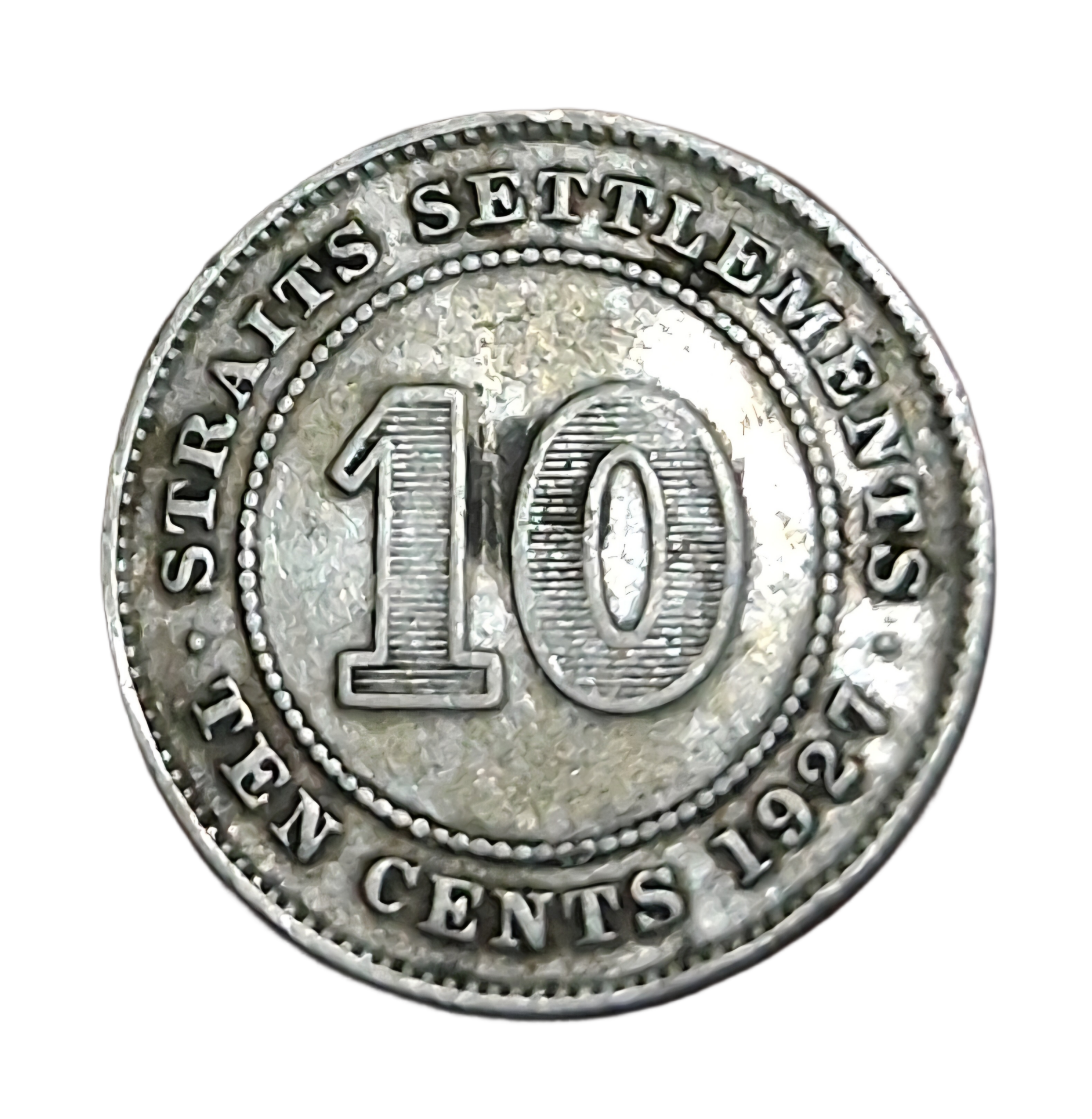 STRAITS SETTLEMENTS Silver 10 CENTS Year 1927 King GEORGE-V in Collectable Grade.