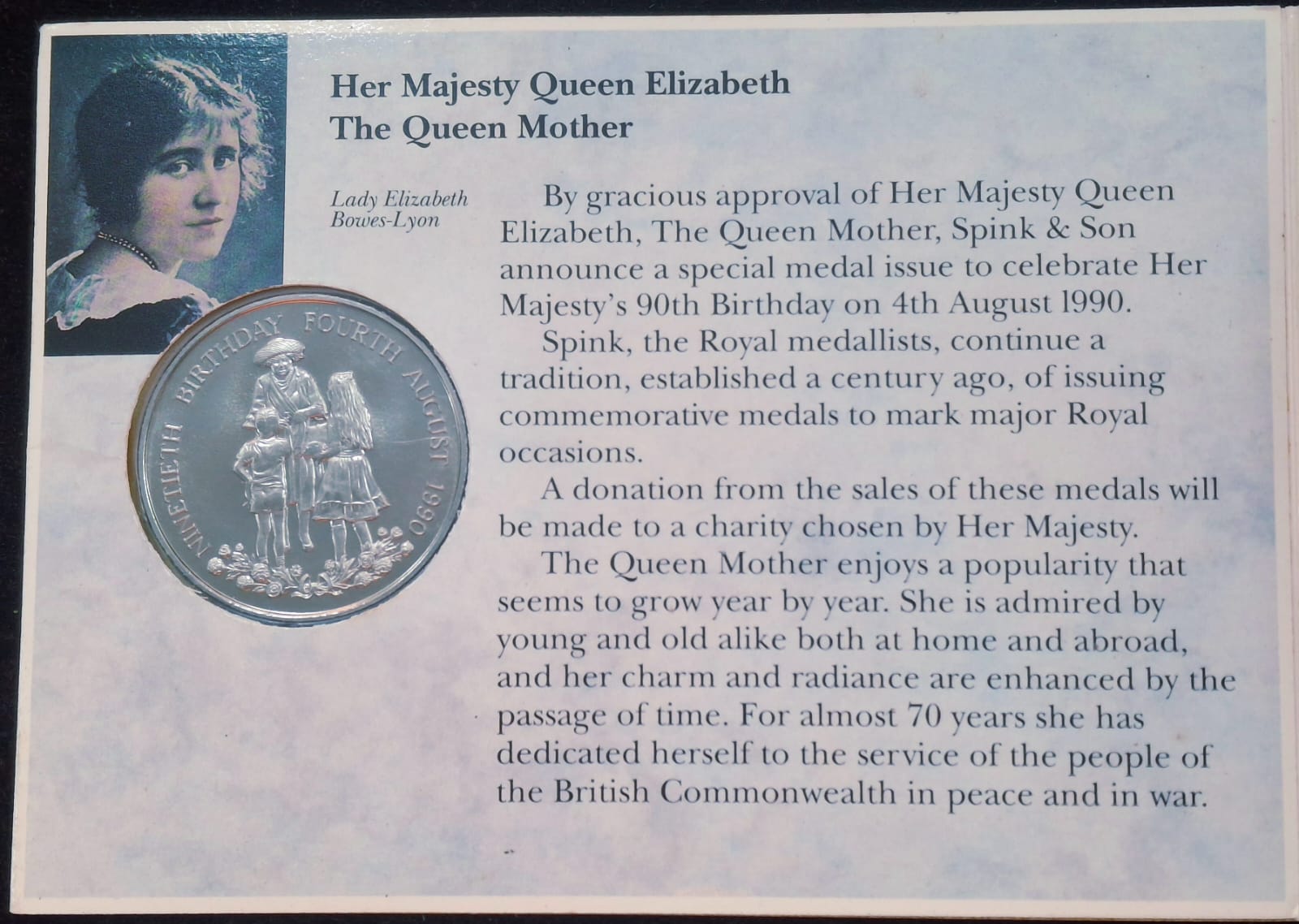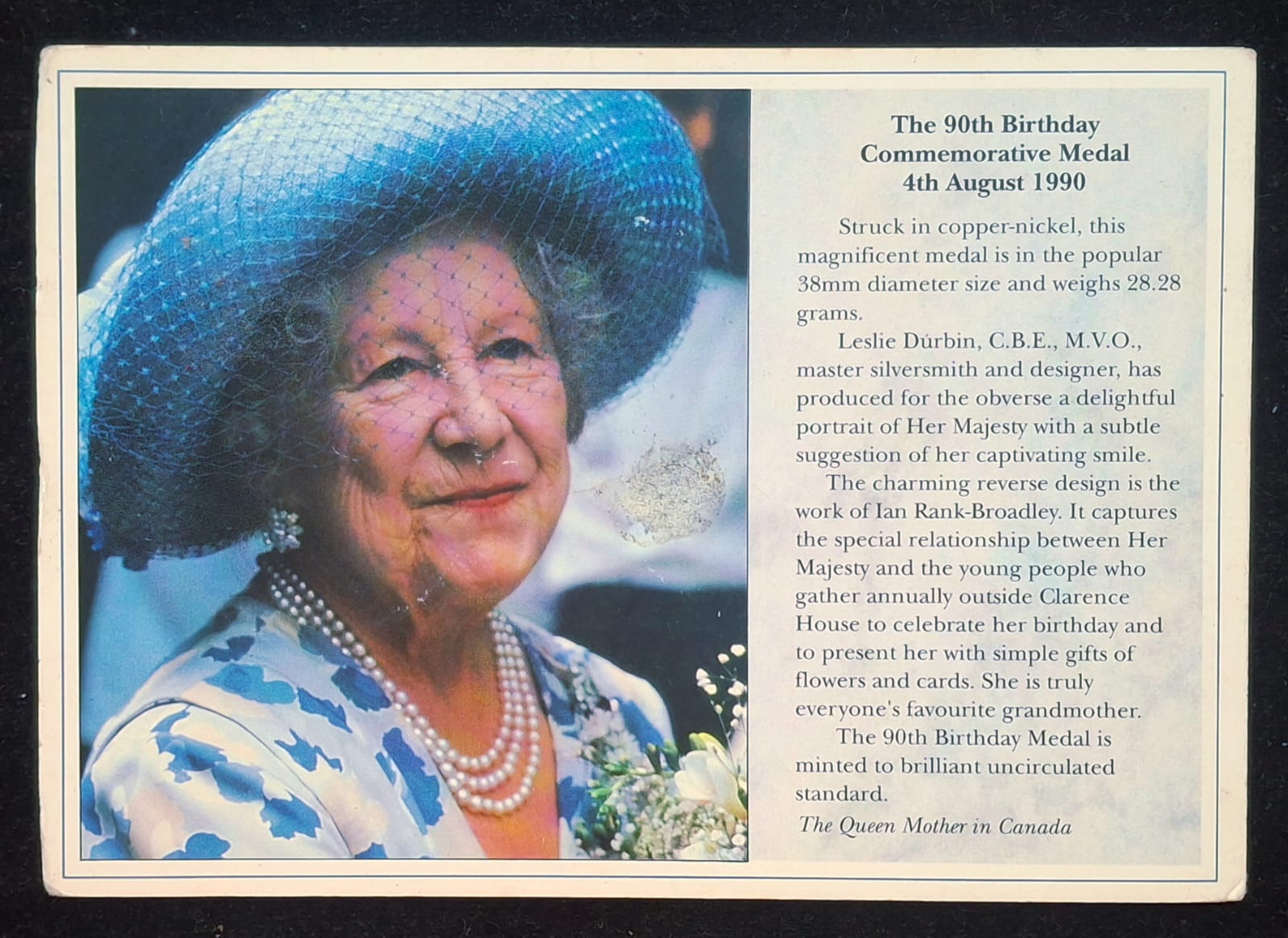 THE QUEEN MOTHER ELIZABETH – 90th BIRTHDAY COMMEMORATIVE MEDAL 1990 RARE (1 COIN ) SET