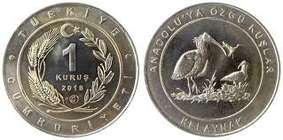 Turkey, 1 Kurus, 2018, Anatolian Birds – Northern bald ibis, KM #1407, AUNC Condition.