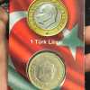 TURKEY 1 TURK LIRA COMMEMORATIVE RARE BIMETALLIC MINT PACK ATM CARD COIN