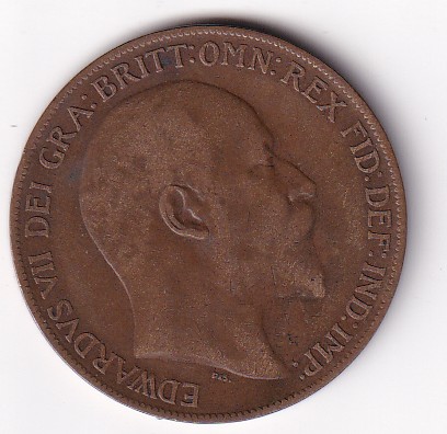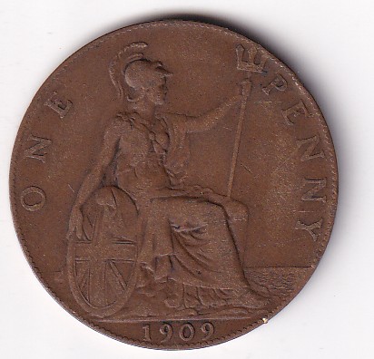 United Kingdom 1 Penny 1909 Edward VII Rare Coin #I-186