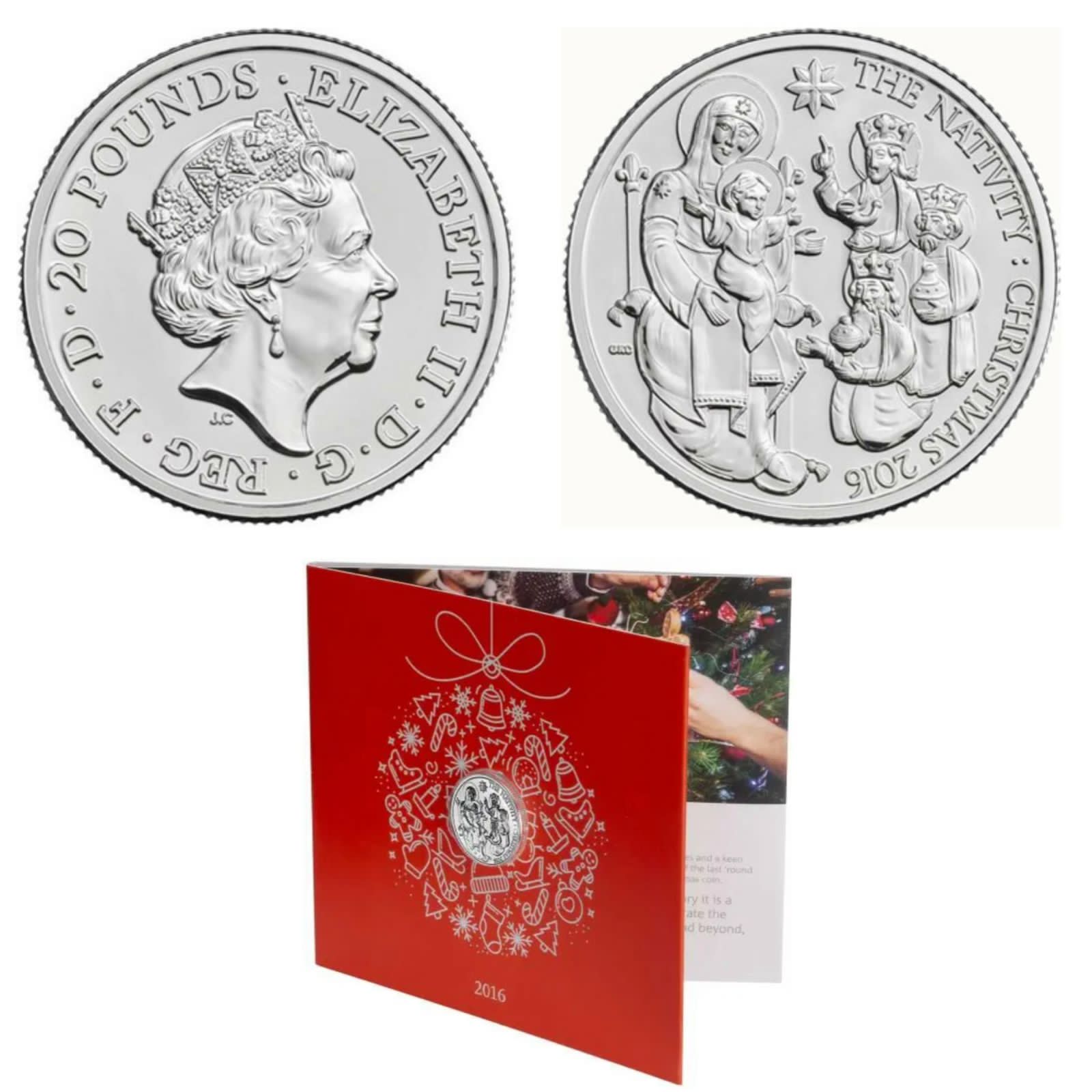 United Kingdom 20 Pounds 2016 – Elizabeth II Christmas, The Nativity Commemorative issue Royal Mint Issue Rare Silver (Weight 15.71 g)