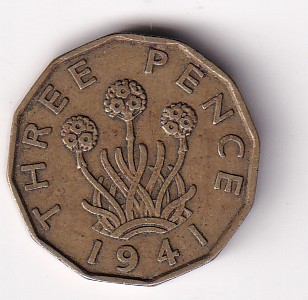 United Kingdom 3 Pence 1941 (George VI with ‘IND:IMP’) Rare Coin #D-236
