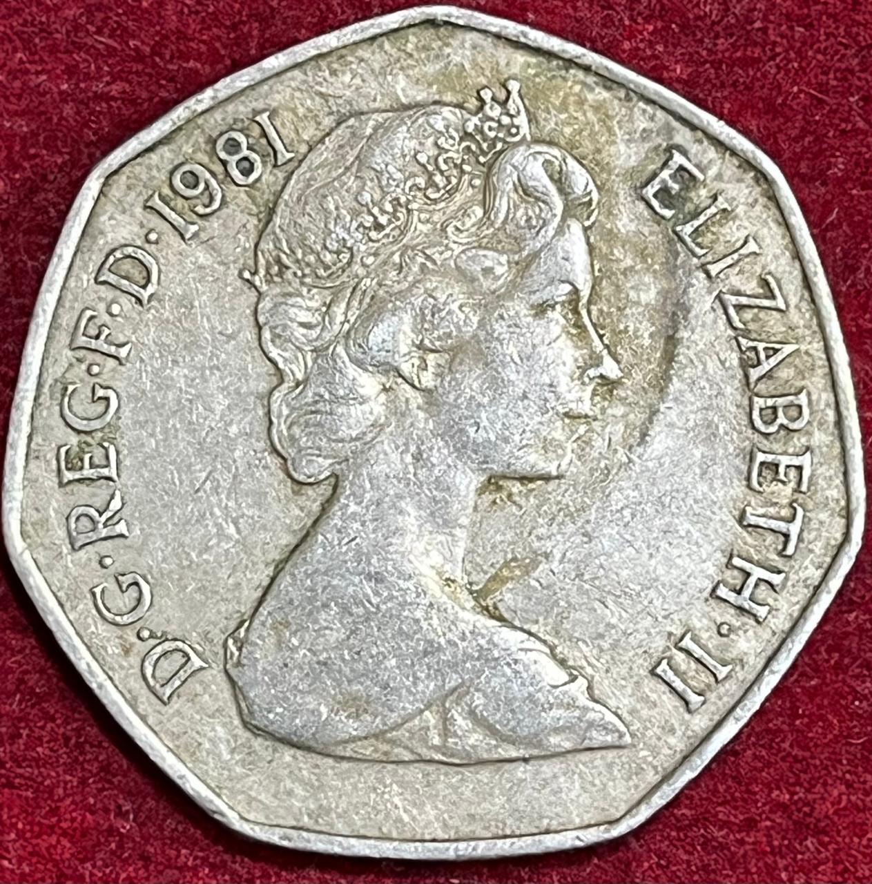 United Kingdom big size 50 New Pence 1981 – Elizabeth II 2nd RARE COIN #S-24