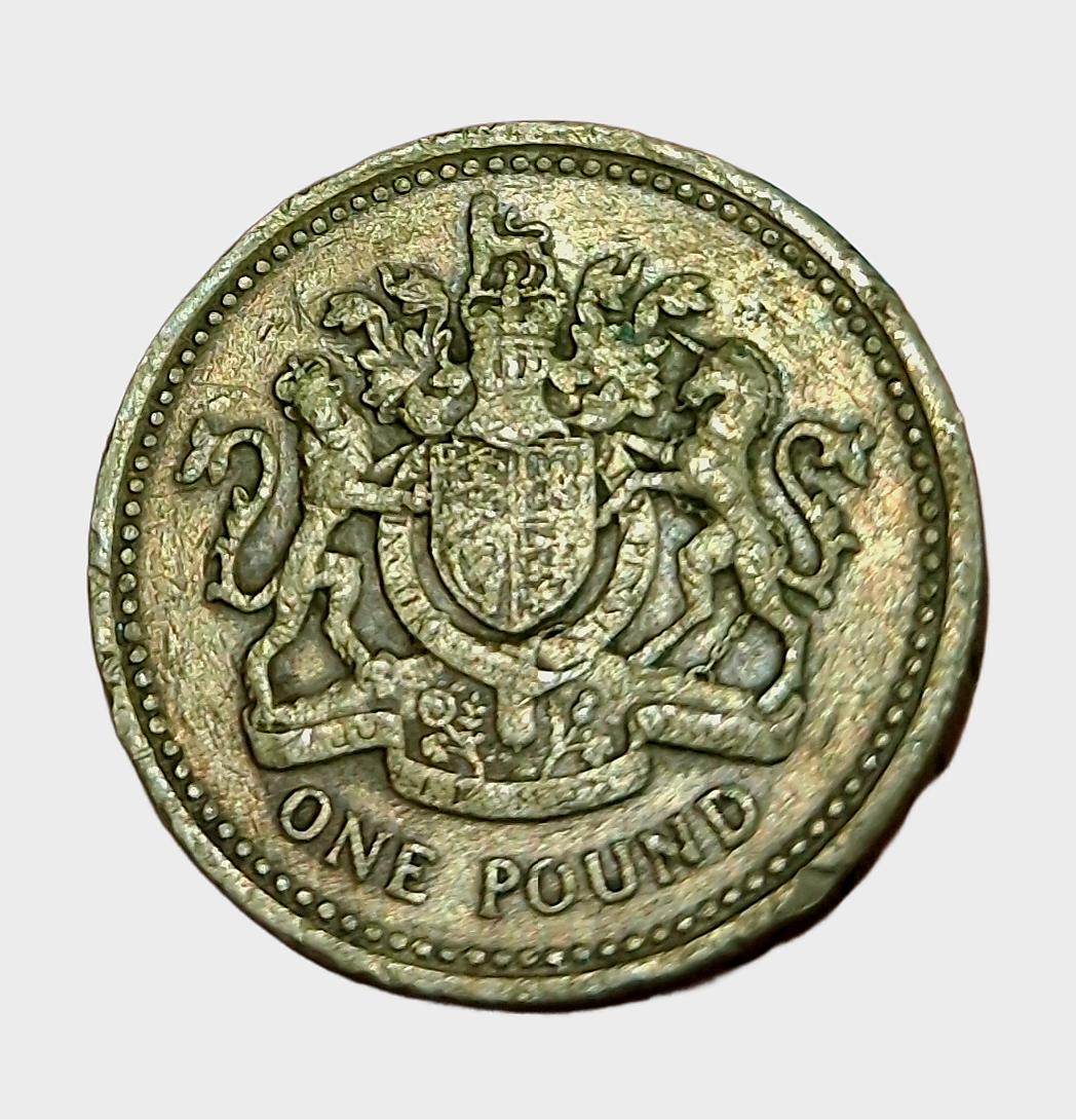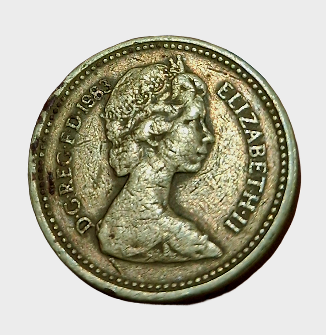 UNITED KINGDOM Brass ONE POUND Year 1983 Queen ELIZABETH-II in Used Condition.