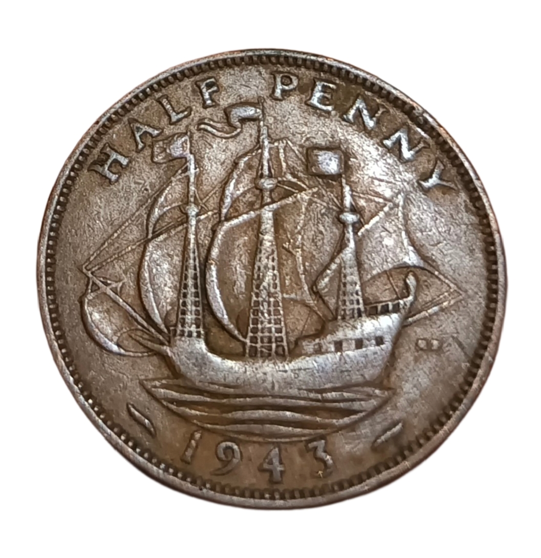 🌟 Rare 1943 UNITED KINGDOM Bronze 1/2 PENNY