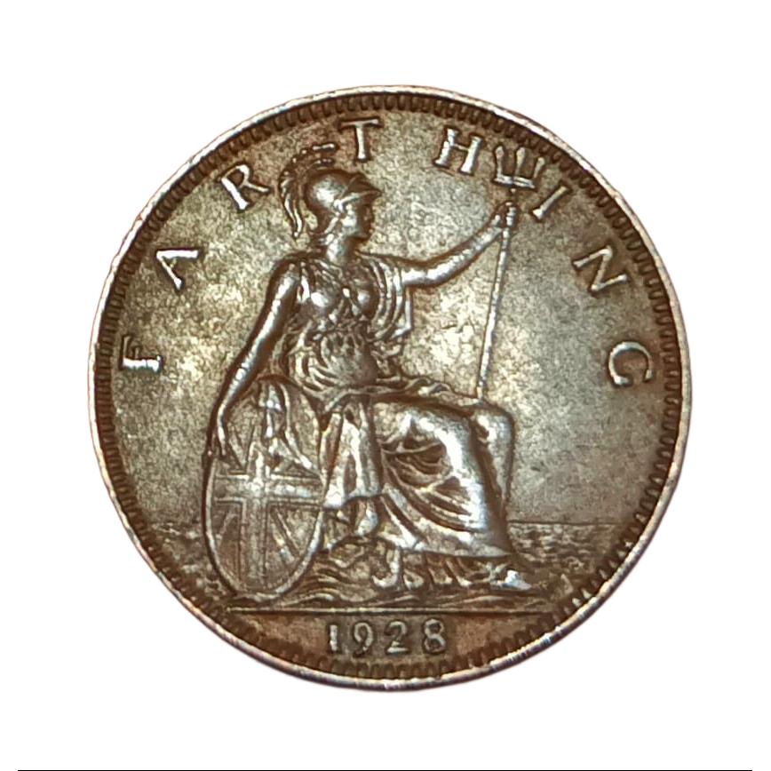 UNITED KINGDOM Bronze 1 FARTHING Year 1928 King GEORGE-V Small Size **RARE** High AUNC Grade.