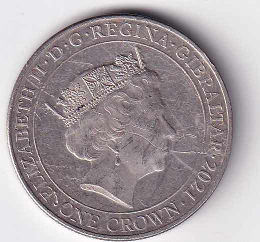 United Kingdom, Gibraltar 1 Crown 2021- Elizabeth II Platinum Wedding Commemorative issue Rare Coloured Coin #M-42