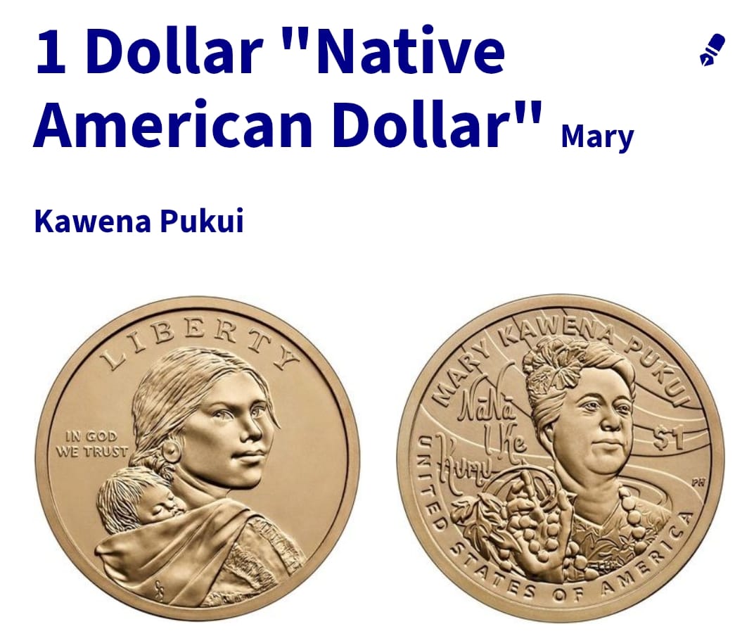 United States 1 Dollar “Native American Dollar” Mary Kawena Pukui 2025 Commemorative Gem unc condition rare coin