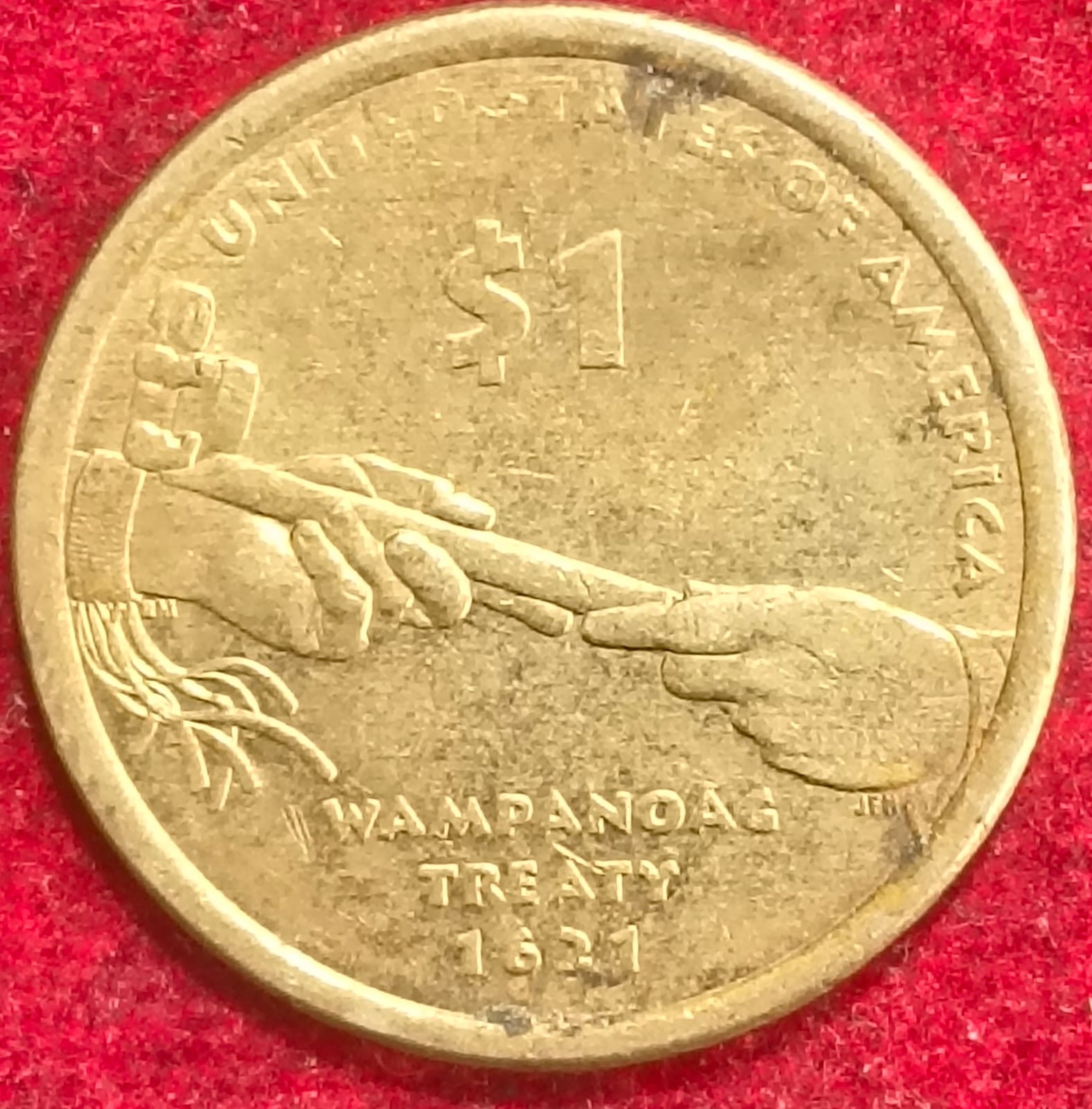 UNITED STATES 1 DOLLAR NATIVE AMERICAN DOLLAR WAMPANOAG TREATY RARE COIN # I-37